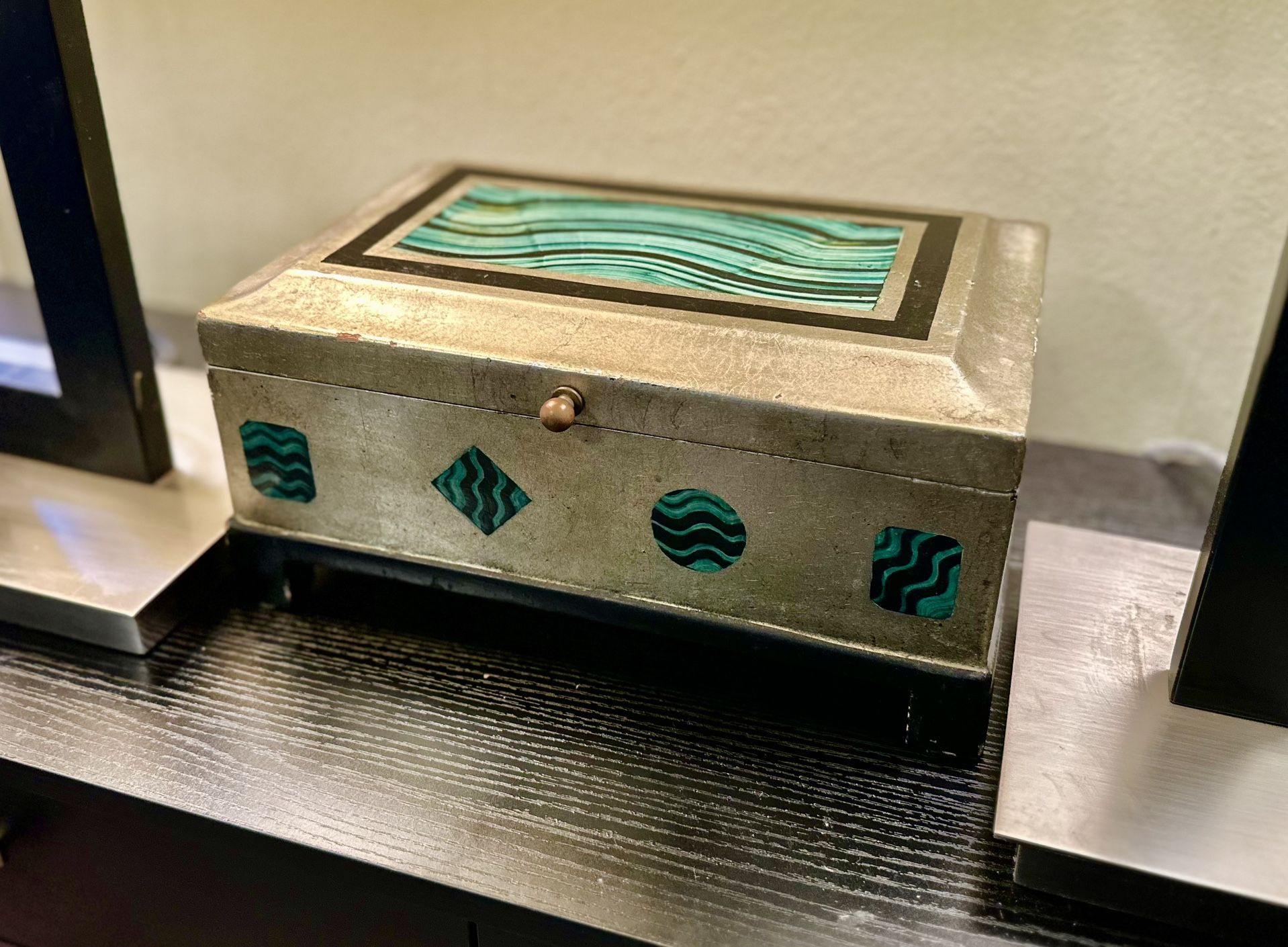 Bronze and Turquoise Painted Malachite Style Box (12” W x 8” D x 5”T)