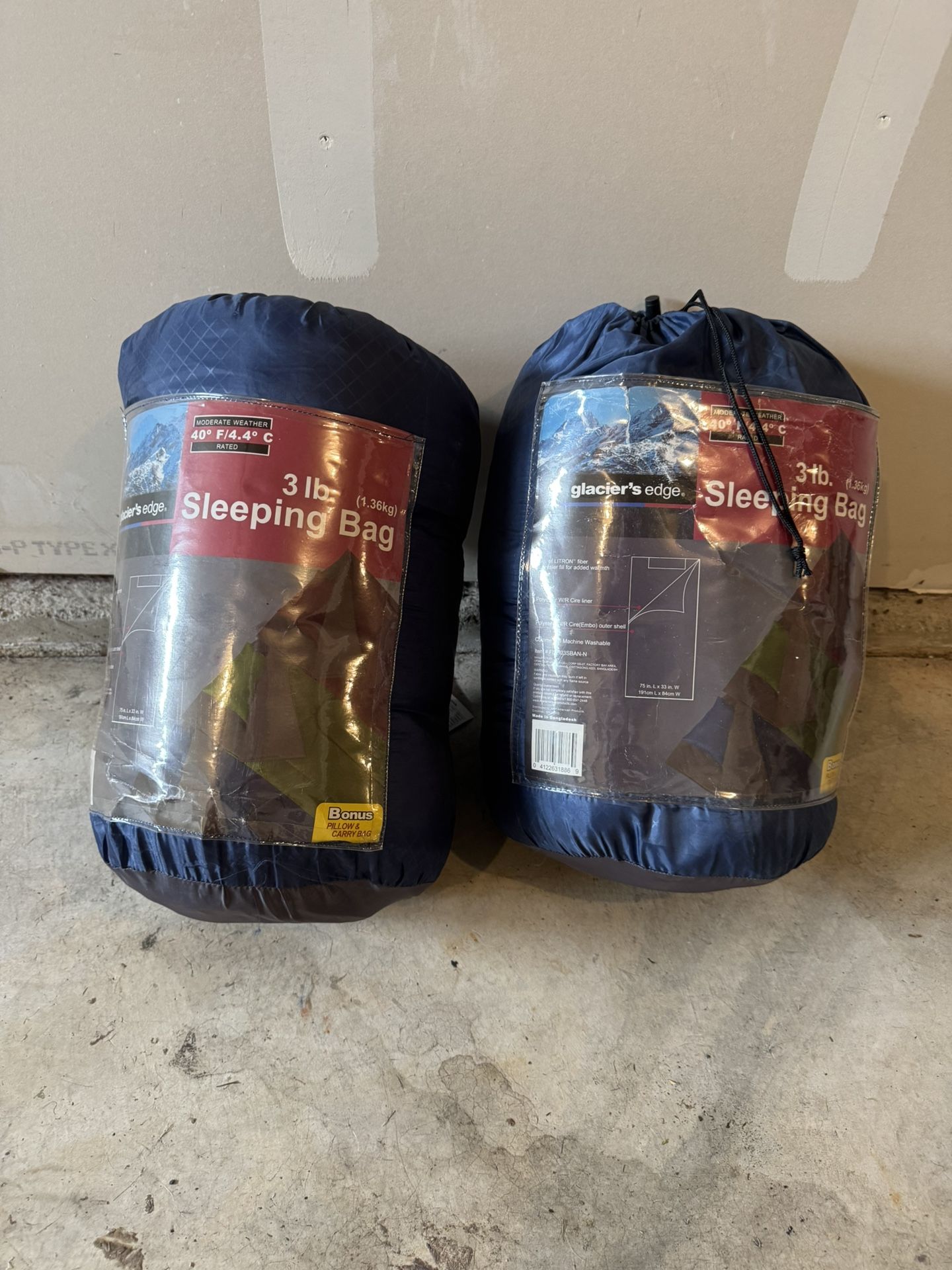 2 sleeping bags for $40. These are unused by me. Received these second hand.