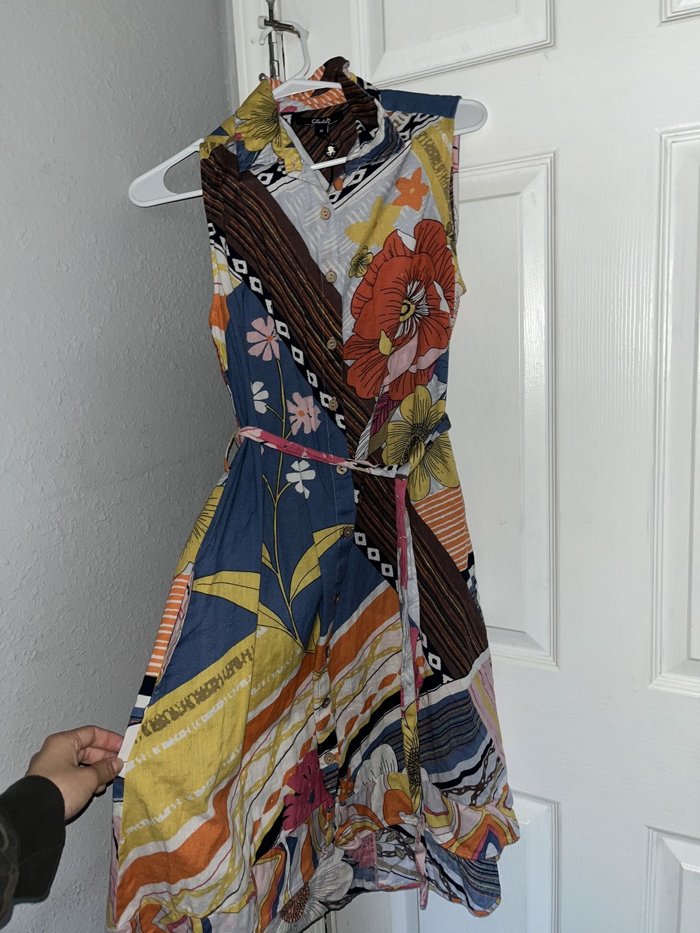 Brand: Charlie B Floral print, knee length dress. Size Medium Dress has pockets.