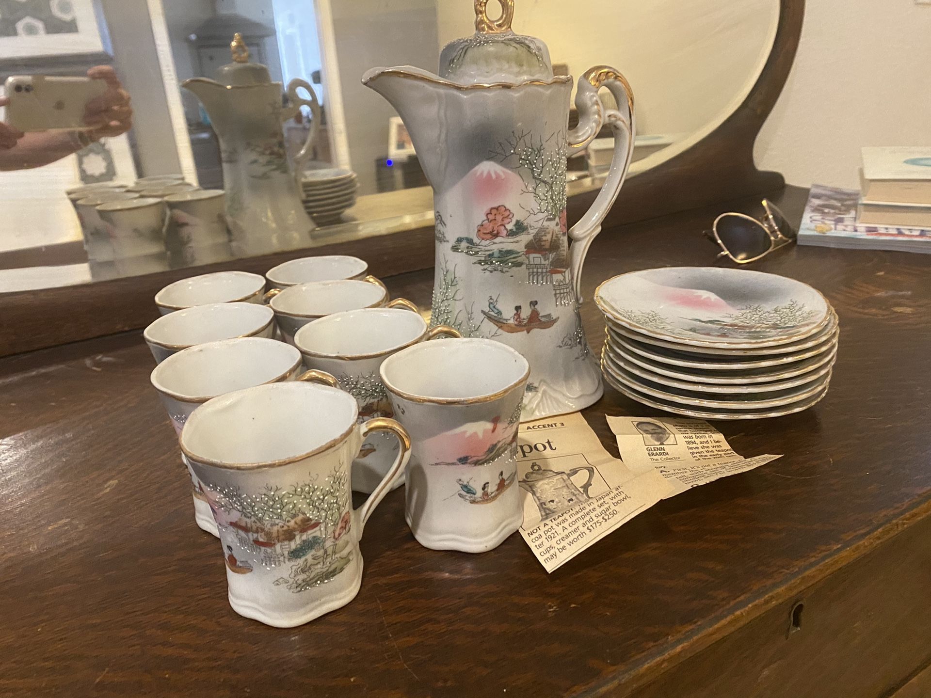 1920’s Japanese coffee set with pot, 8 cups and 7 plates.