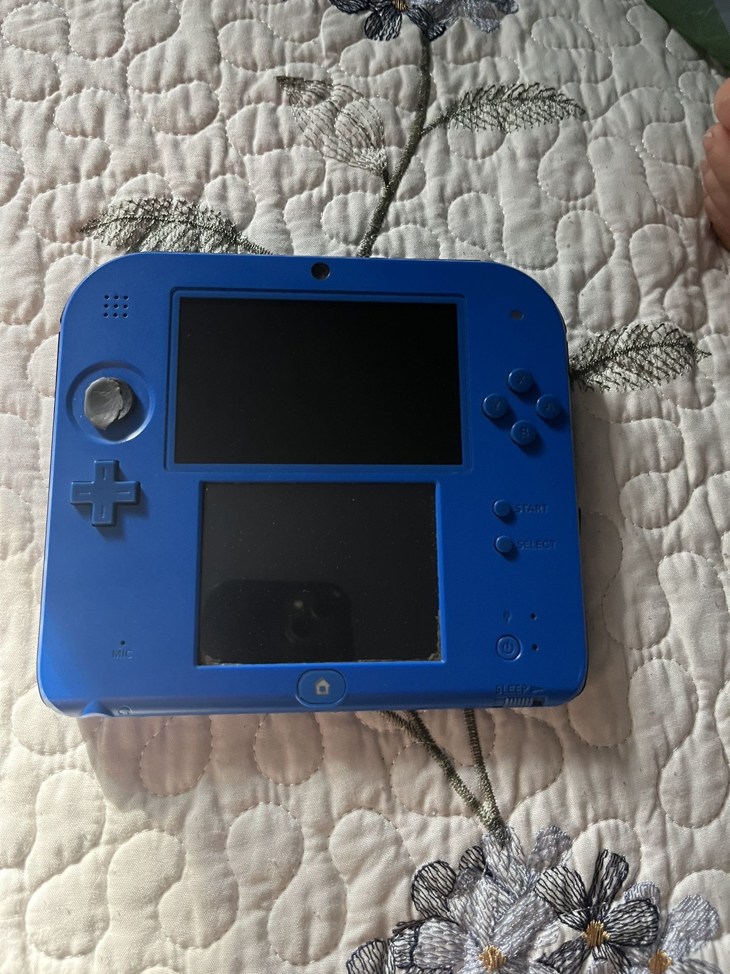 Nintendo 2ds blue Thumb skin is worn out But everything still works Ds has pokebank and poke transporter Also has Pokemon crystal installed 60$