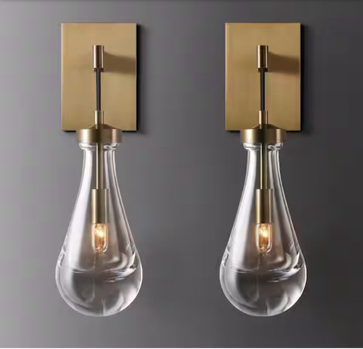 YUYI 17.7 in. H 1-Light Copper Wall Sconce, Raindrop Wall Lighting with Hand Blown Solid Glass and Brass Base (2-Sets