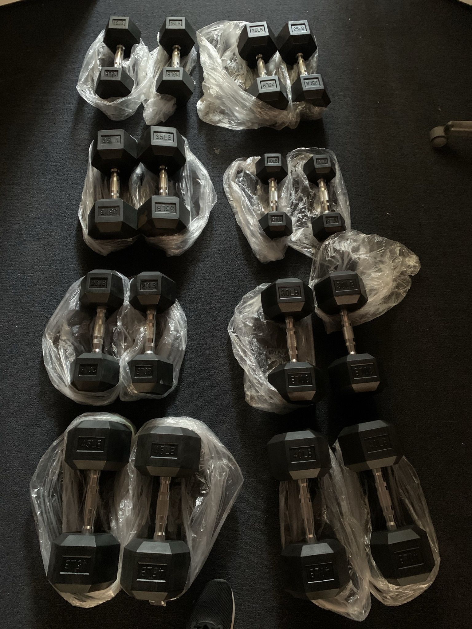 Brand new sets 10 pounds - 45pounds All pairs 440 pounds total $650 for all For more gym accessories and gym wear visit: Gymaddictessentials.com Use code: offerup For a discount