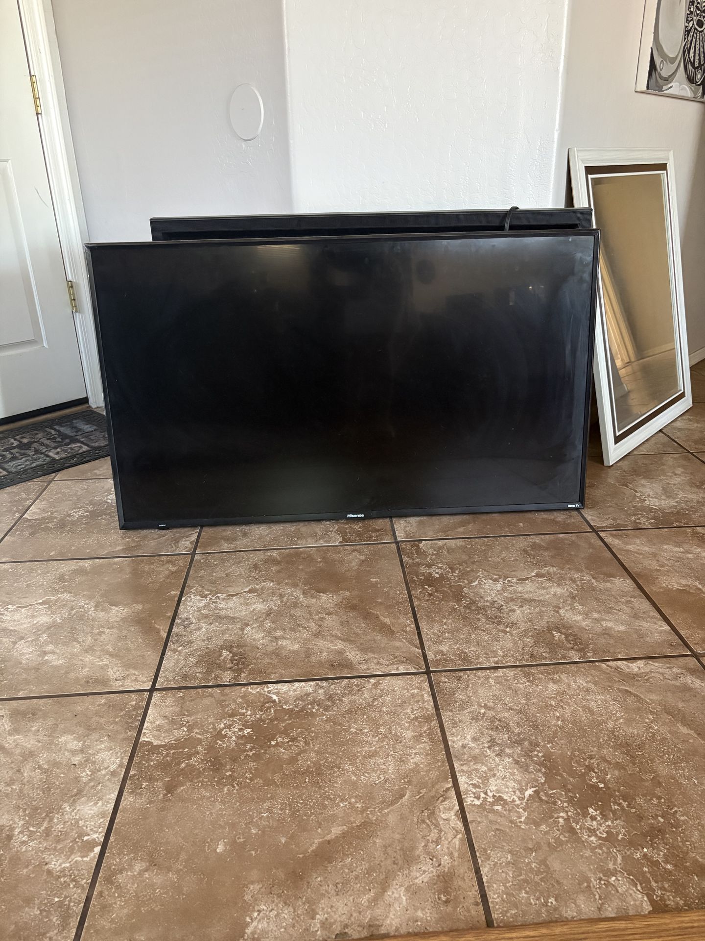 Black 44inch Hisense TV Screen. Comes with hooks attached. Very good condition. No refunds/returns