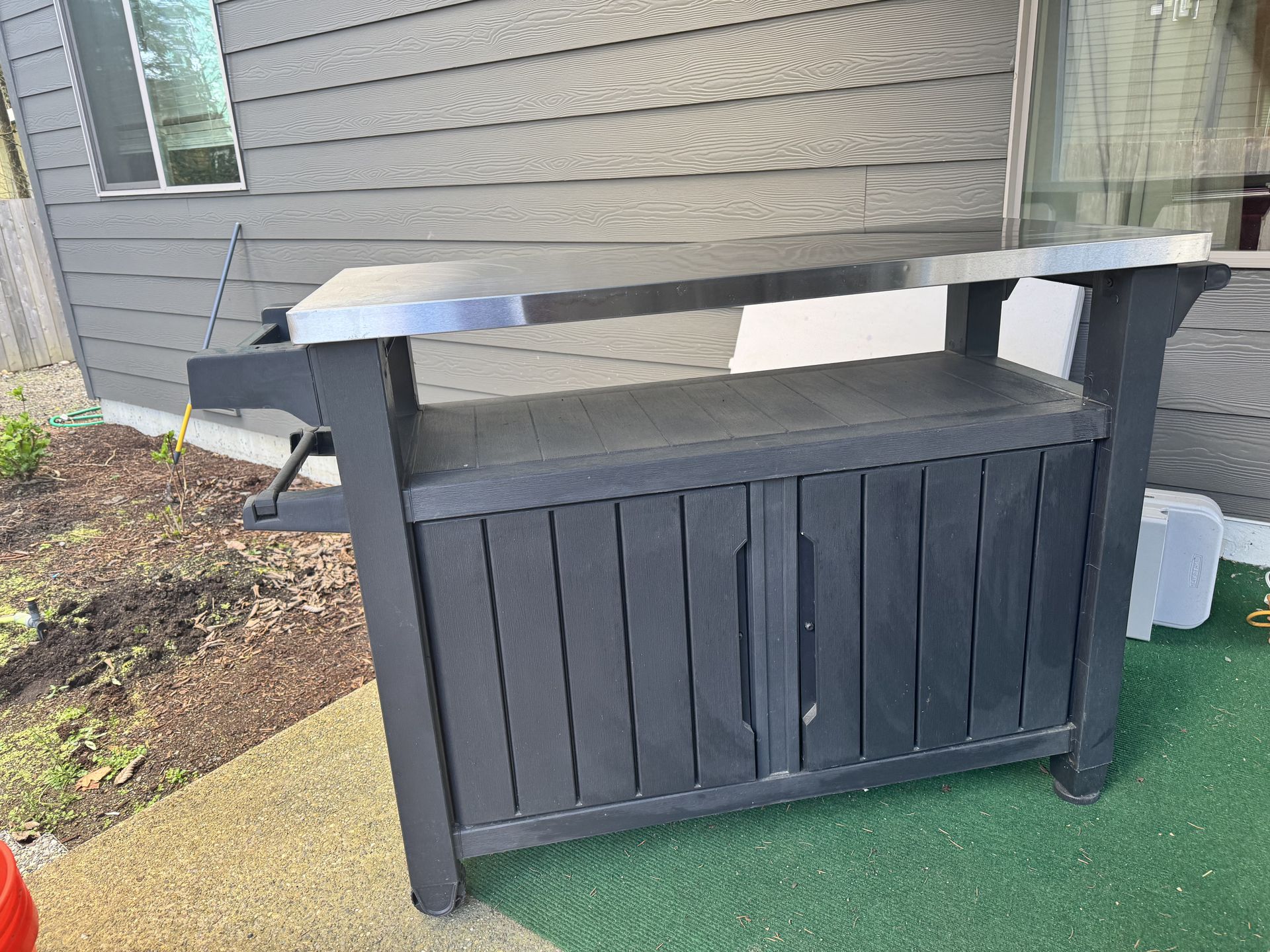 [moving sale] outdoor BBQ prep cart with storage