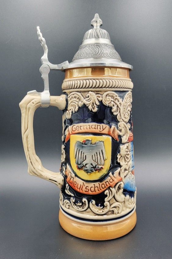 Handarbeit Stein with pewter lid. No stains, fading, chips or cracks.