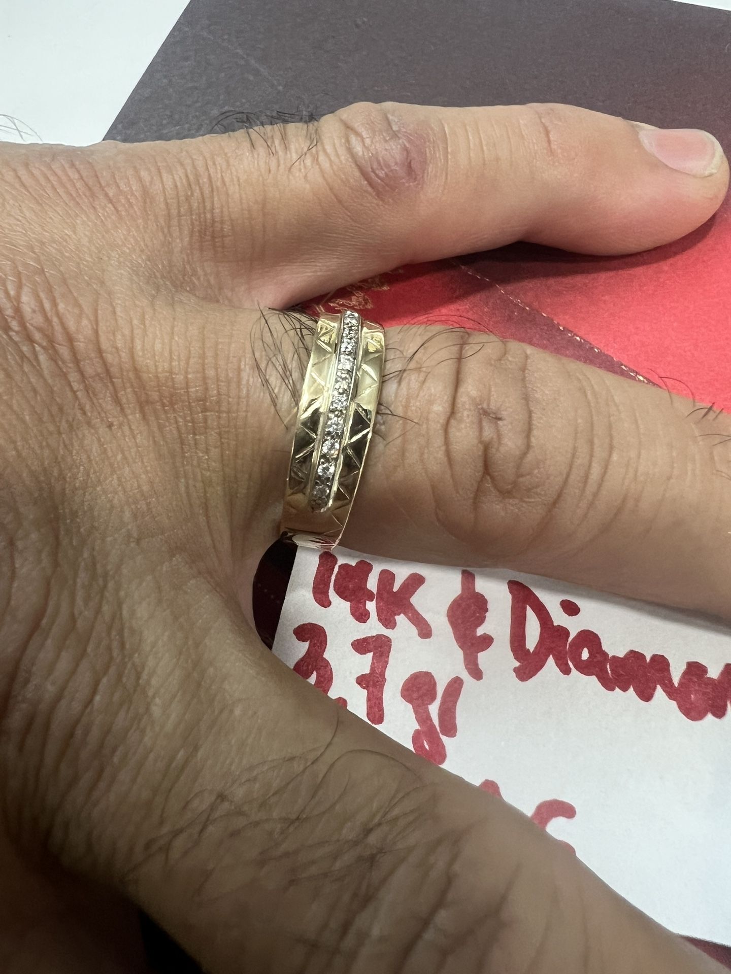 14K Solid Gold Man Wedding Band With Diamonds π Stones 3.7Gr Size 10.5
