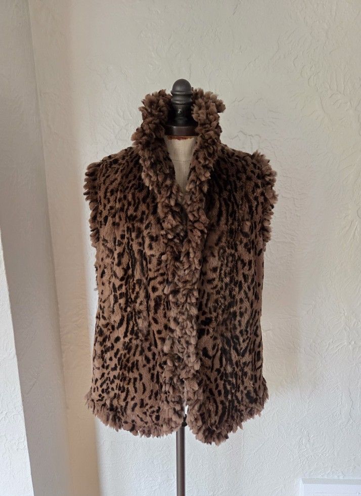Rabbit Fur Vest Animal Print, Reversible, Size S NO OFFERS