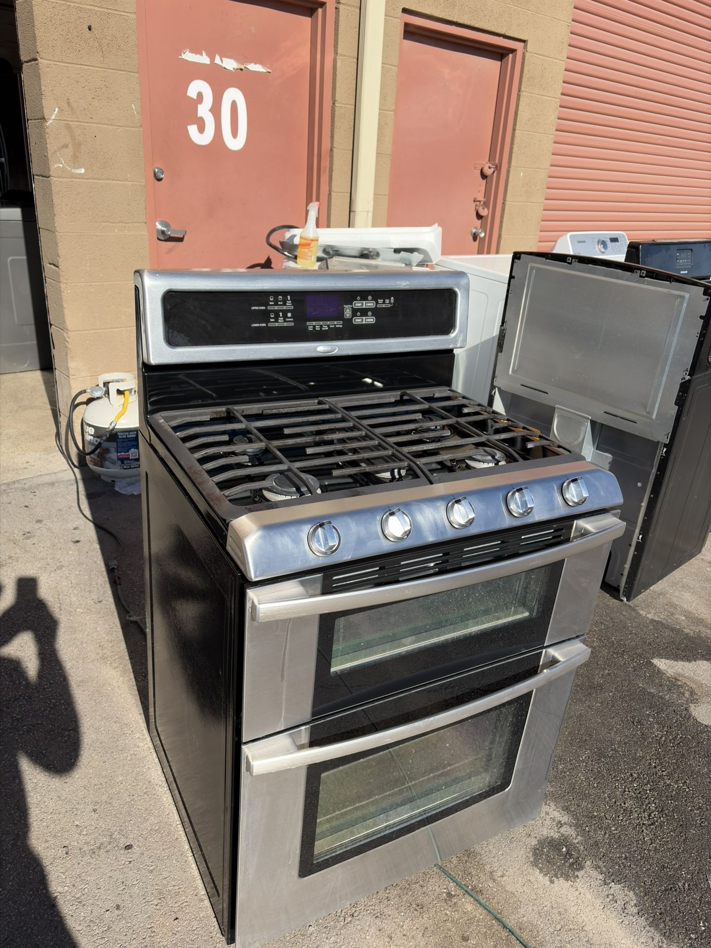 Double Oven Bake/Broil Ready 4 Burners Quiet Operation 30 ” Wide Unit Large Capacities Works Great- In Good Working Condition With Warranty Fully Tested! ‼️ Delivery/Install Available ‼️