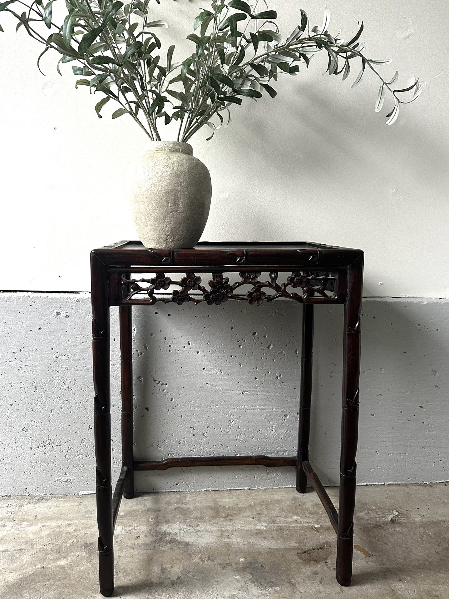 Vintage Carved Dark-Wood Accent Table β Faux Bamboo Frame