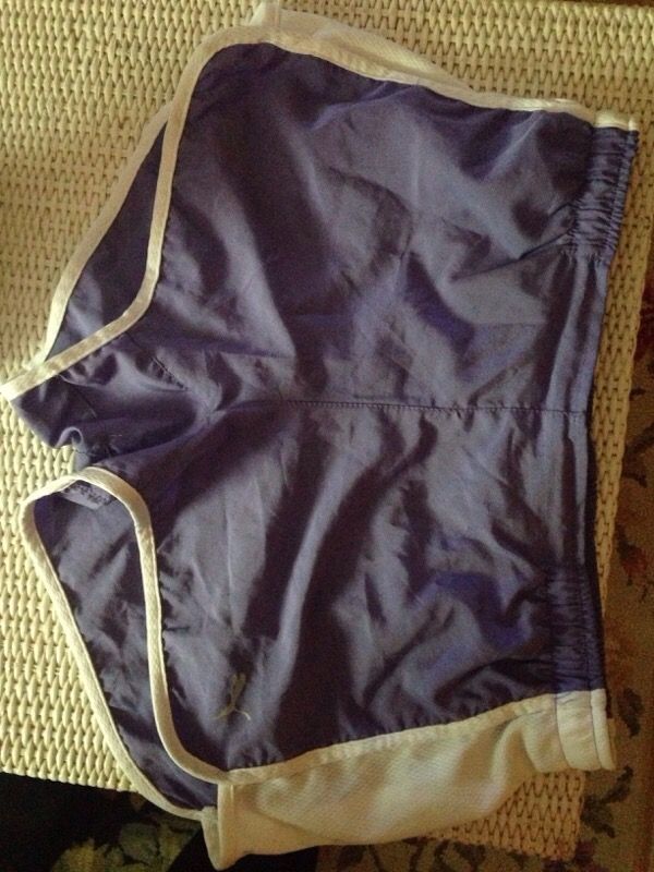 Size Medium Purple and White Puma running shorts. Never worn. Took tags off to put in drawer but never wore. Excellent shape. $5 or Make Offer