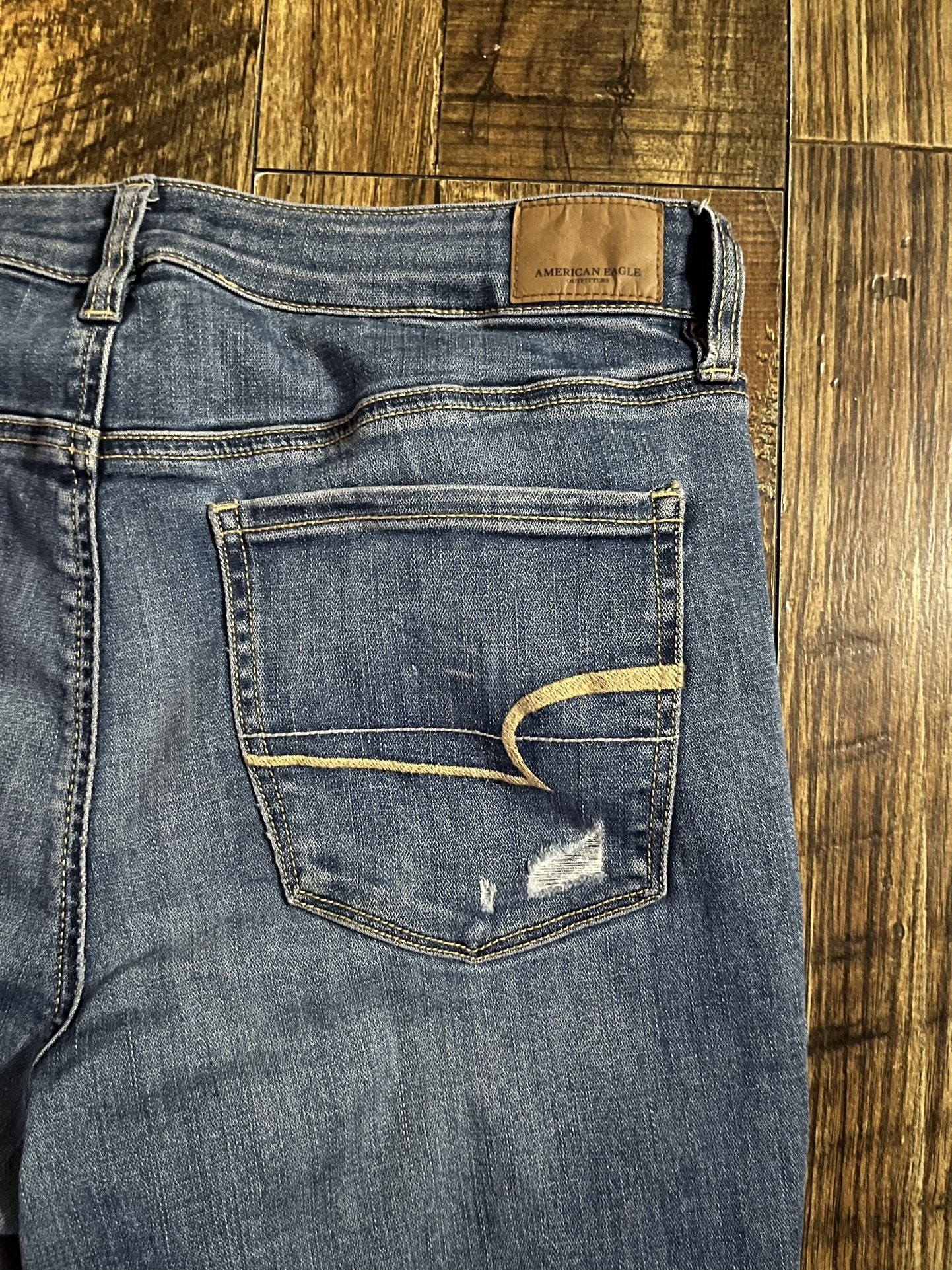 Stylish blue jeans with back pocket design. Comfortable fit. Perfect for casual wear. Size 12