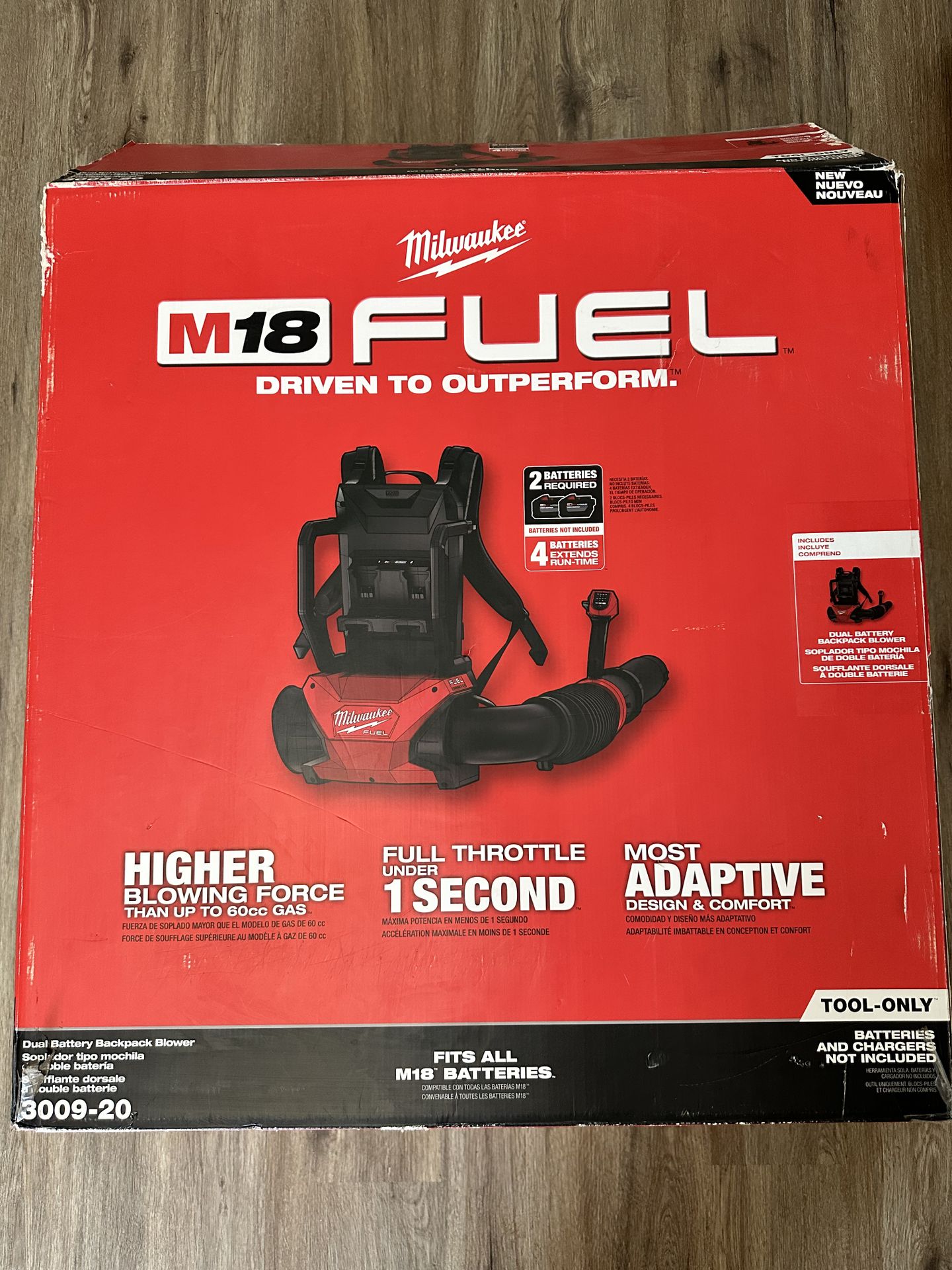Used for only end of last season, powerful blowing force with instant full throttle. Takes 2 M18 batteries for operation, you can add 2 additional for extended run time right on it as well as customize the battery configuration. Adjustable harness, telescoping nozzle, trigger speed, and low noise level. Just like the box says, tool only no batteries included.