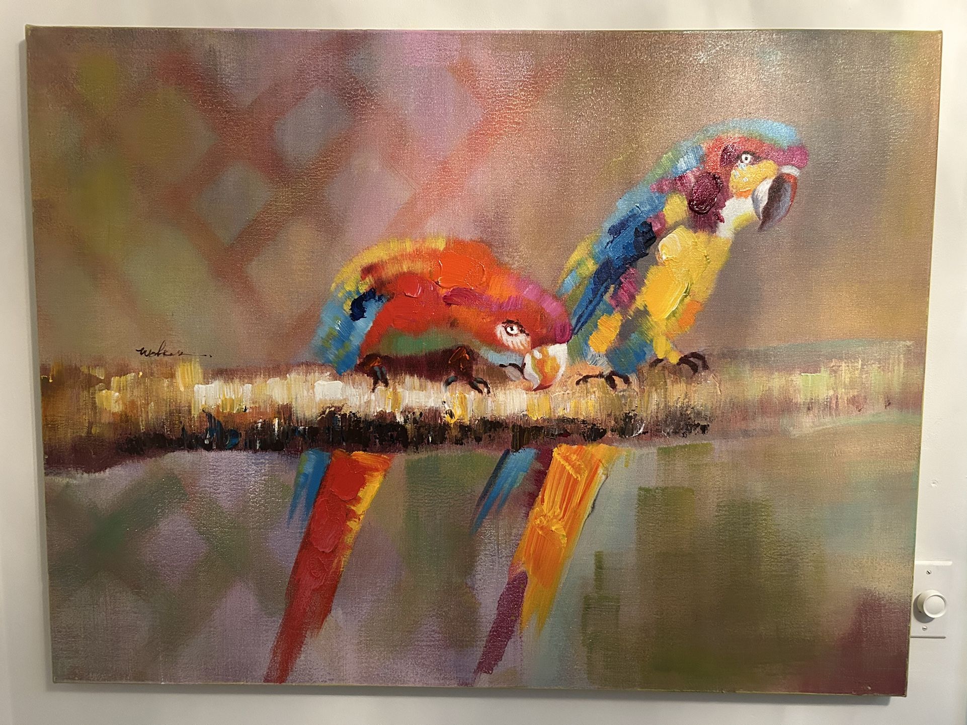 Hand Painted Artist Signed Oil on Canvas Walking Paradise Macaw π¦ Birds painting. Dimensions 48β W x 36β H x 1.5 D Great condition Smoke-free home