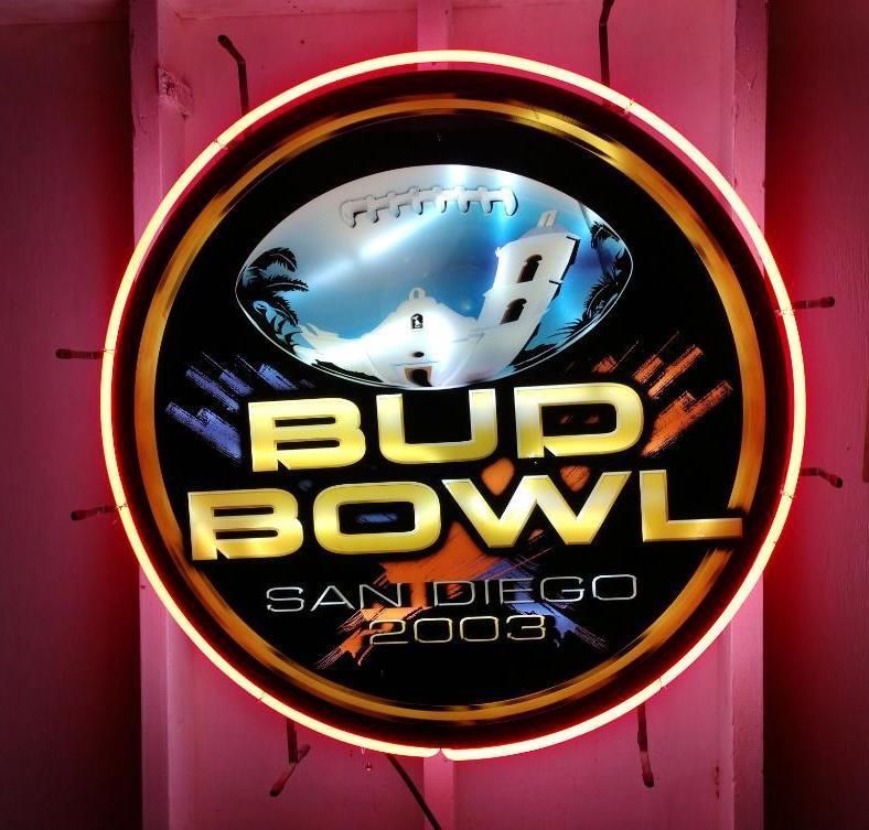 The Bud Bowl 2003 neon sign is a rare piece of promotional beer memorabilia created for Anheuser-Busch's 2003 Super Bowl marketing Product Details & History The Campaign: Unlike the original stop-motion "Bud Bowl" commercials that ran from 1989 to 1997, the 2003 version was a retail-focused "Take the party home" promotion. Sign Design: The specific 2003 San Diego Bud Bowl Neon Sign was a large 36”x 36” , multi-colored display used to promote the Super Bowl (which was held in San Diego that year). Limited Edition Variants: Other related neon signs from 2003 include a "Bud Light Beer ESPN" anniversary sign and a "San Antonio Spurs World Champions" sign. Collector's Value: These signs are considered highly collectible "man cave" items. A 2003 San Diego neon sign has appeared in auction houses like Proxibid. Shopping Options If you are looking to purchase one, these are primarily found on secondary markets: Auction Sites: eBay often has rotating stock of Bud Bowl memorabilia, including signs and banners. Specialty Retailers: Sites like https://offerup.co/faYXKzQFnY?$deeplink_path=/redirect/ occasionally list authentic vintage Bud Bowl neon signs. Estimated Price: Prices for authentic vintage Budweiser neon signs generally range from $250 to $600+, depending on the size, rarity, and working condition.