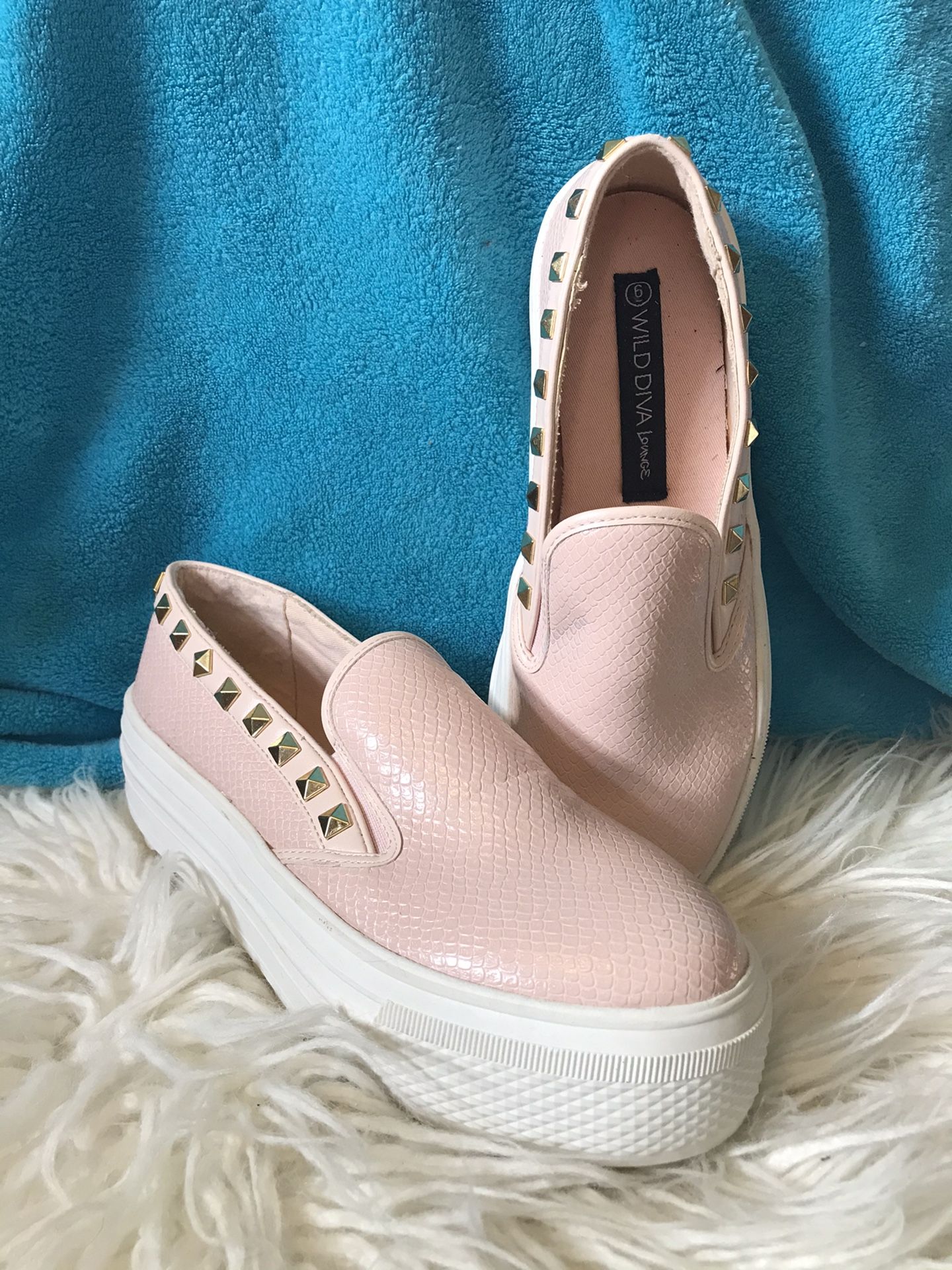 Pale pink faux snake skin with gold embellishments . Barely worn
