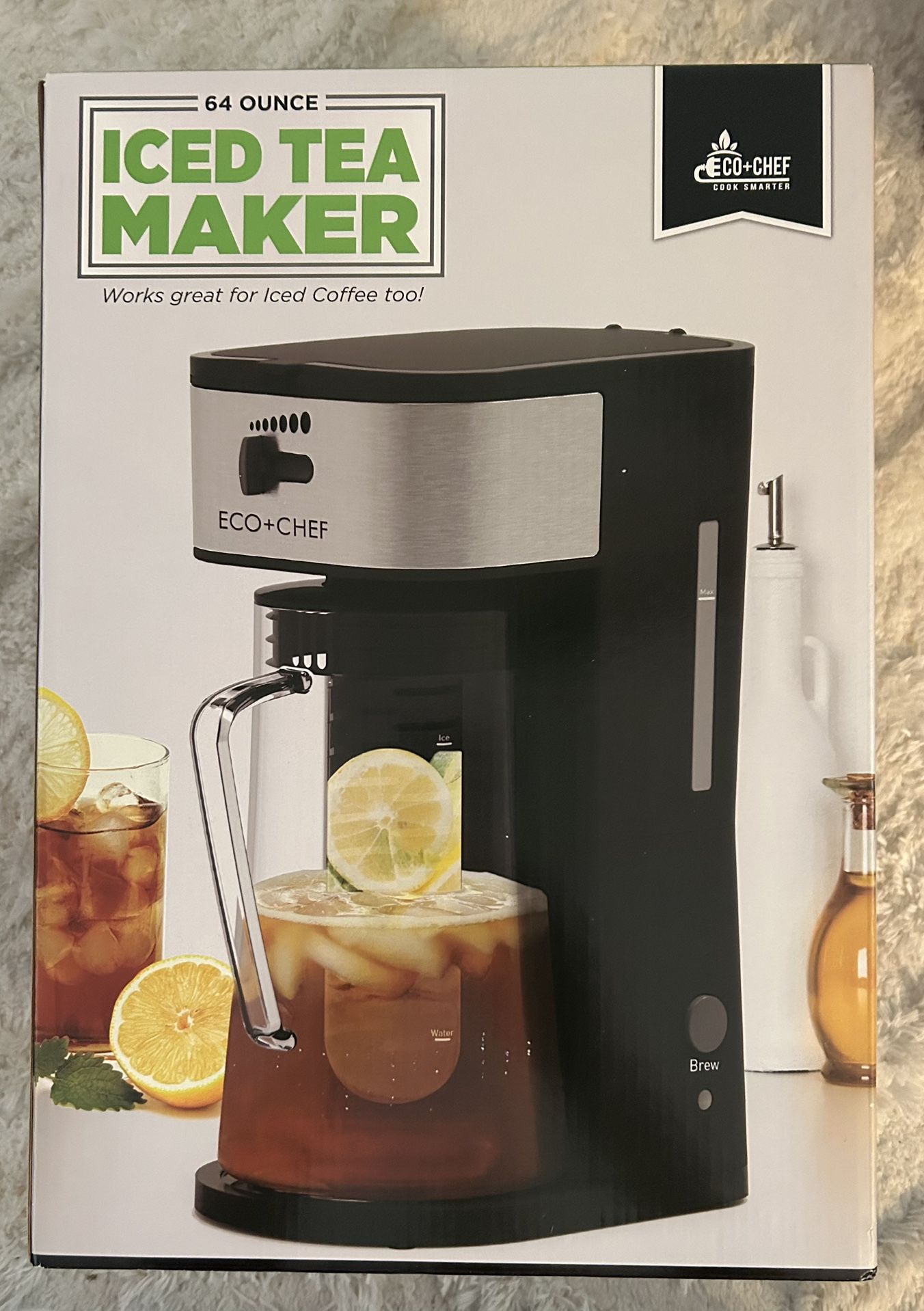 ECO+CHEF ICED TEA MAKER, 700 Watts, 64 Ounce Glass Pitcher. Has a Strength Selector and Infusion Tude that steeps the tea bags for a great tasting tea. Interior Mesh Filter, Viewable Water Level, Power Indicator Light and Non-Slip Base. Pickup in The Colony 75056 Cash Only