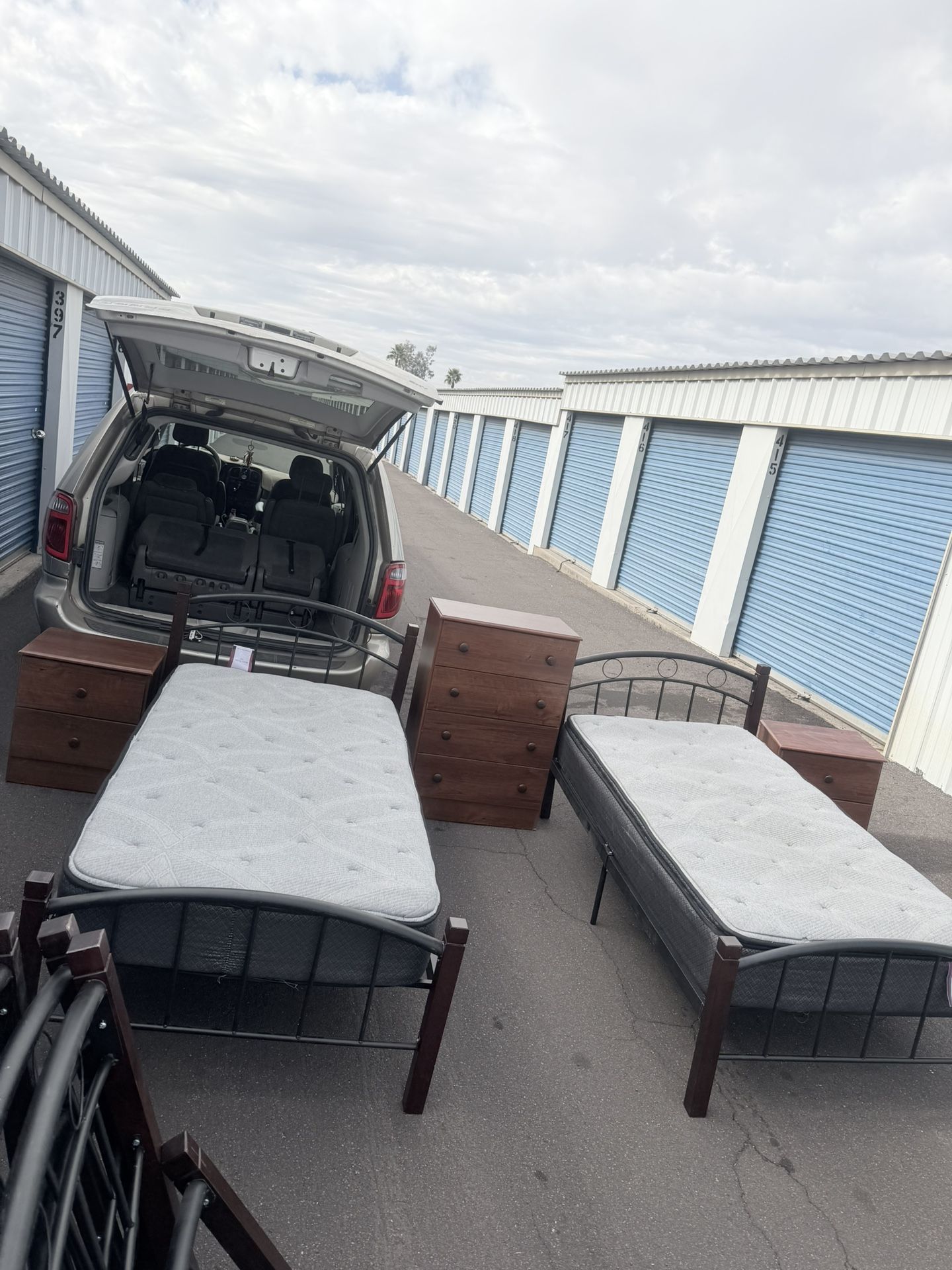 Set two twin beds dresser two nights stand Memory Foam Mattress Incuded
