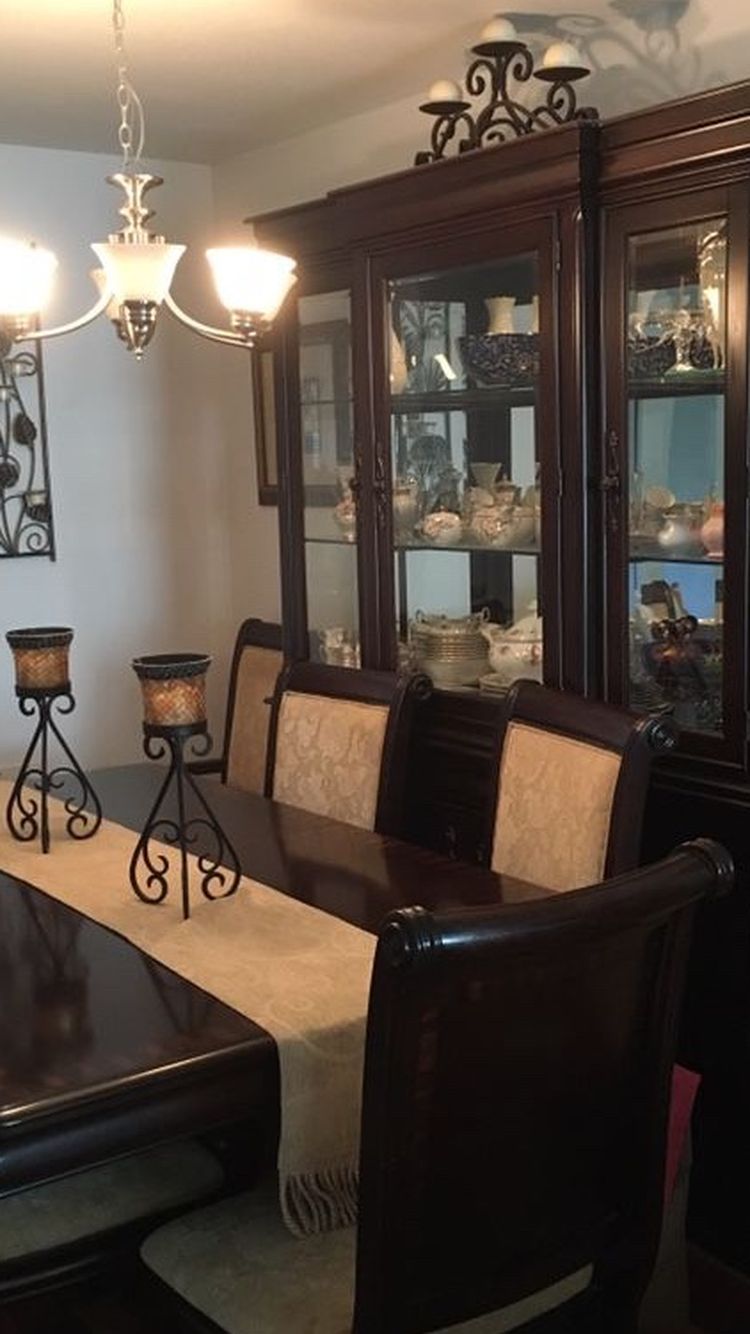 the table and chairs have minor scratches. but the buffet is well maintained. has a backlight on top.