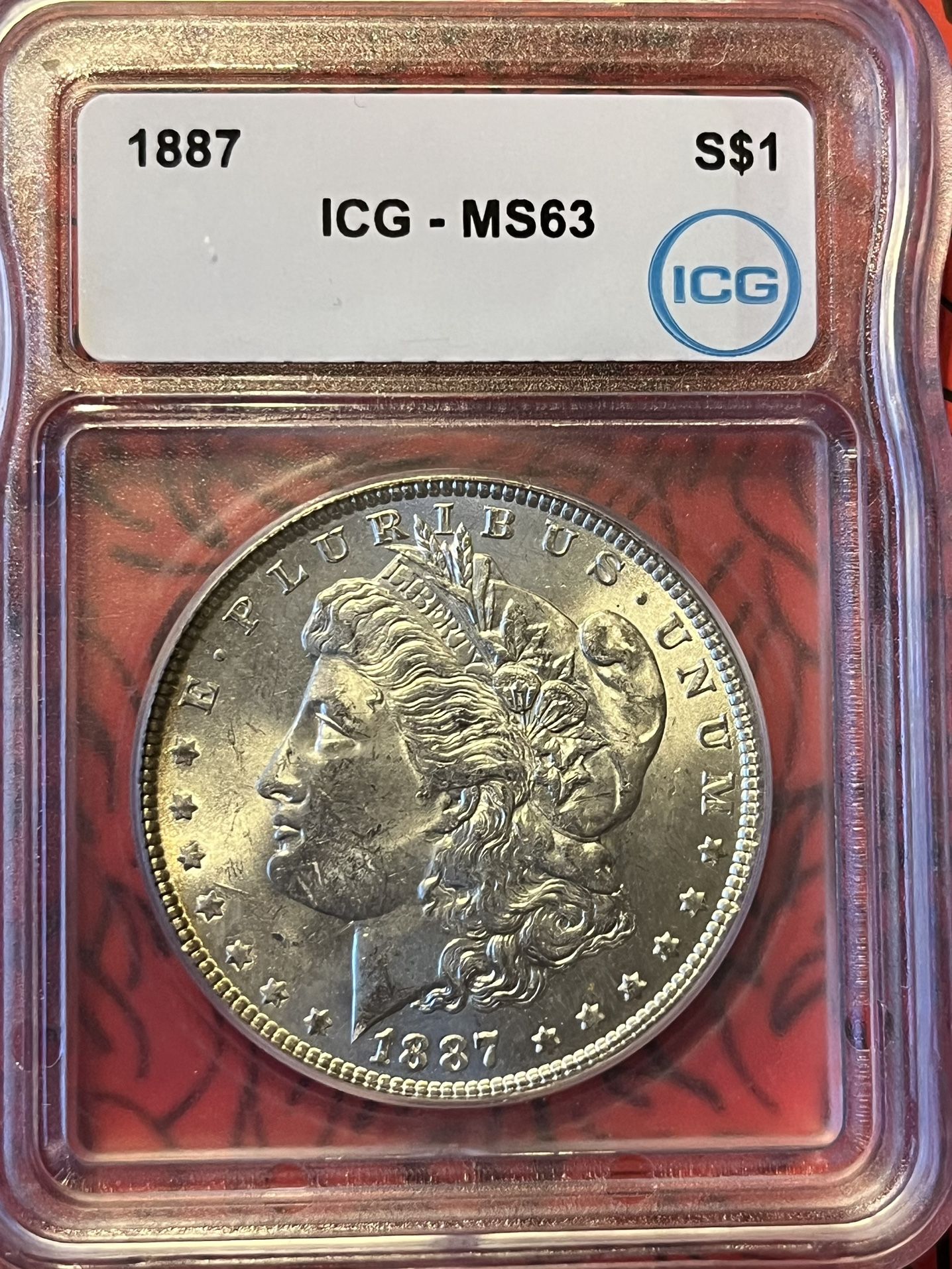Own a piece of history, 1887 Morgan Silver Dollar. The coin is graded MS-63 by the Independent Coin Graders (ICG). The Morgan dollar was minted from 1878 to 1904 and again in 1921. The coin features a depiction of Lady Liberty on one side, while the reverse shows a bald eagle with outstretched wings. This one is a beauty. A very nice add to your big coin collection. Shipping Available. Stay Safe.