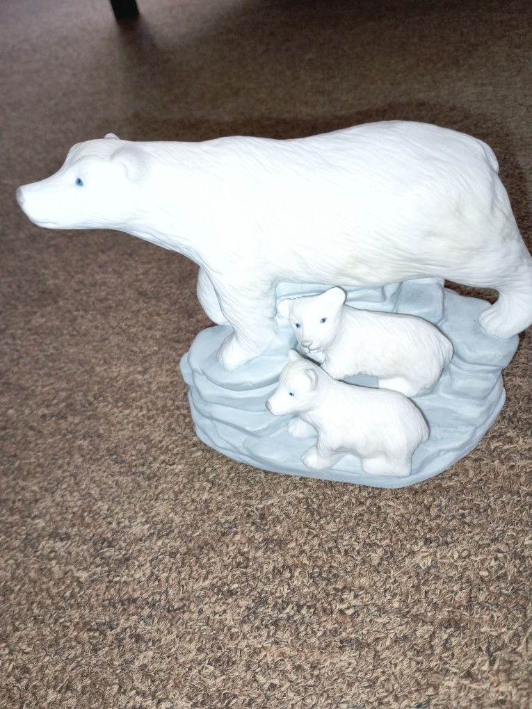 Special Vintage Mother Polar Bear With 2 Cubs On Ice Rare Find