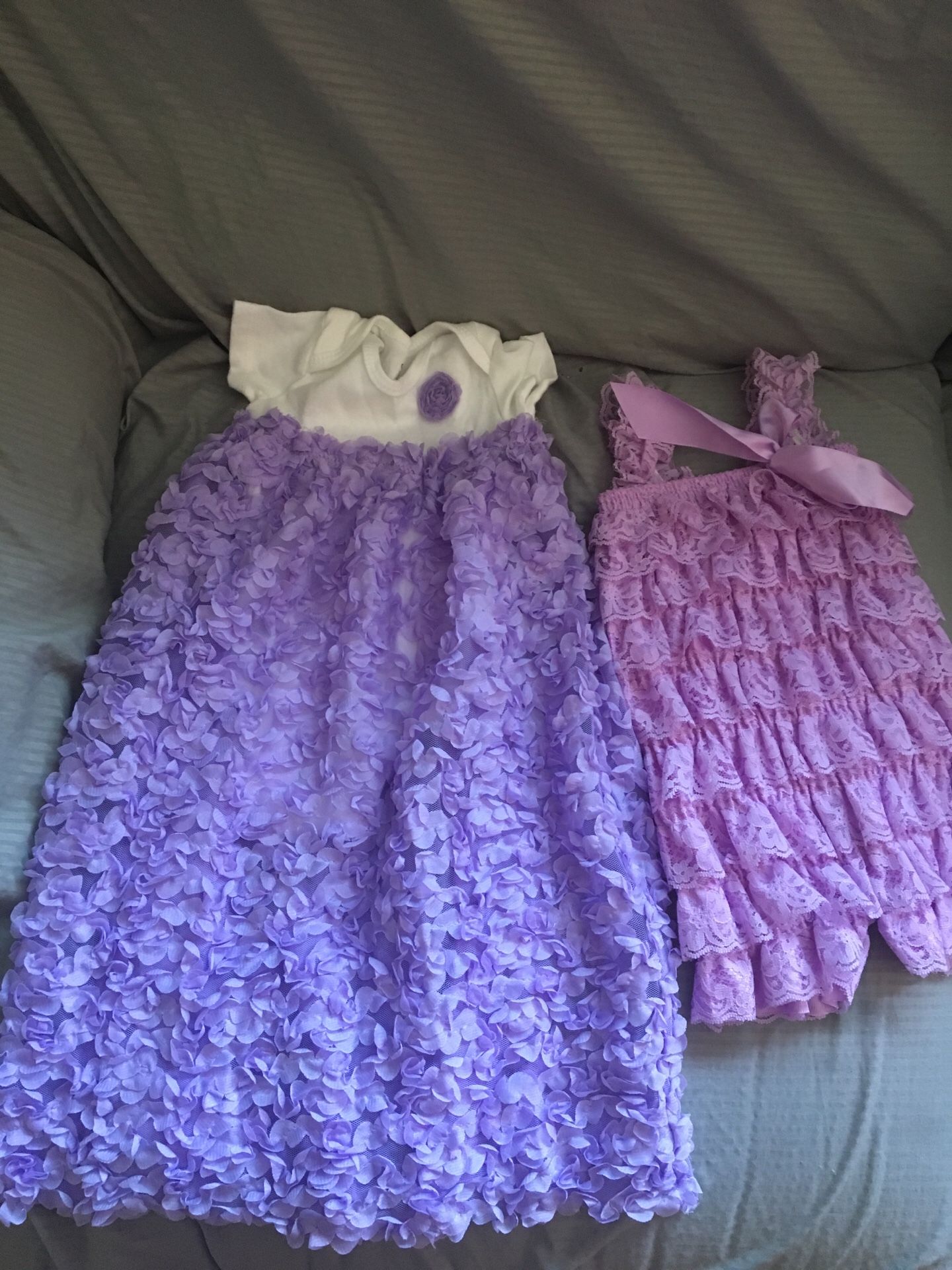 Carters 3 month white and purple dress.. 3 mo onesie with ribbon. Can be sold separately.