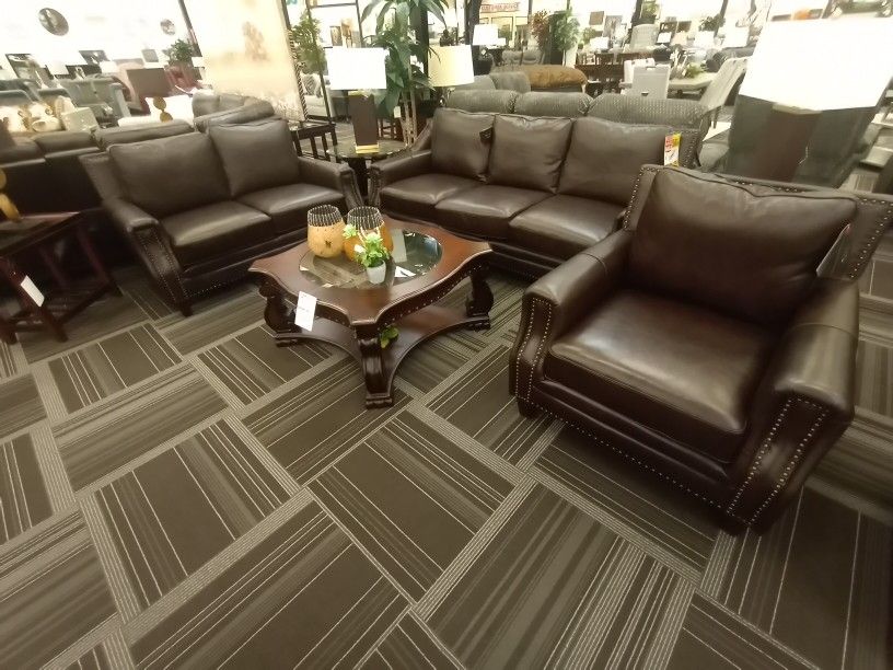 100% Top Grain Leather/ Dark Brown Sofa, Loveseat, and Arm Chair LAST ONE!!