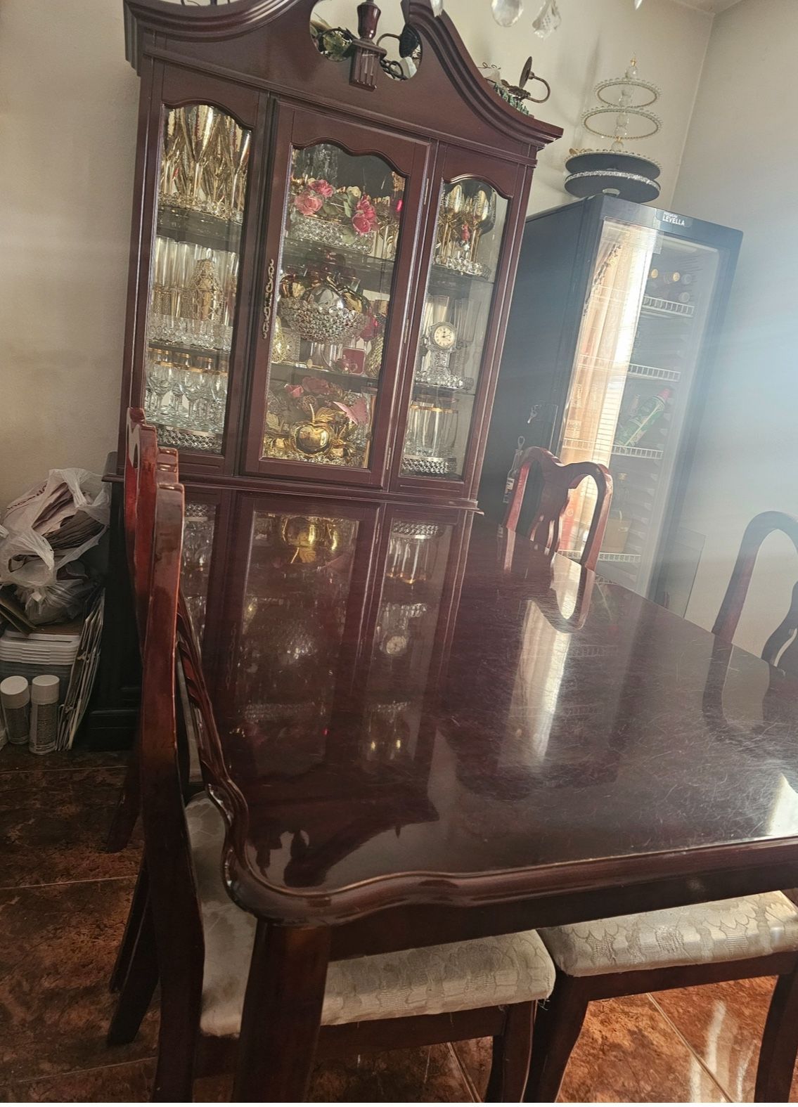Selling Cabinet And Table With Chairs $500 Also The Small Refrigerator $150 Great condition