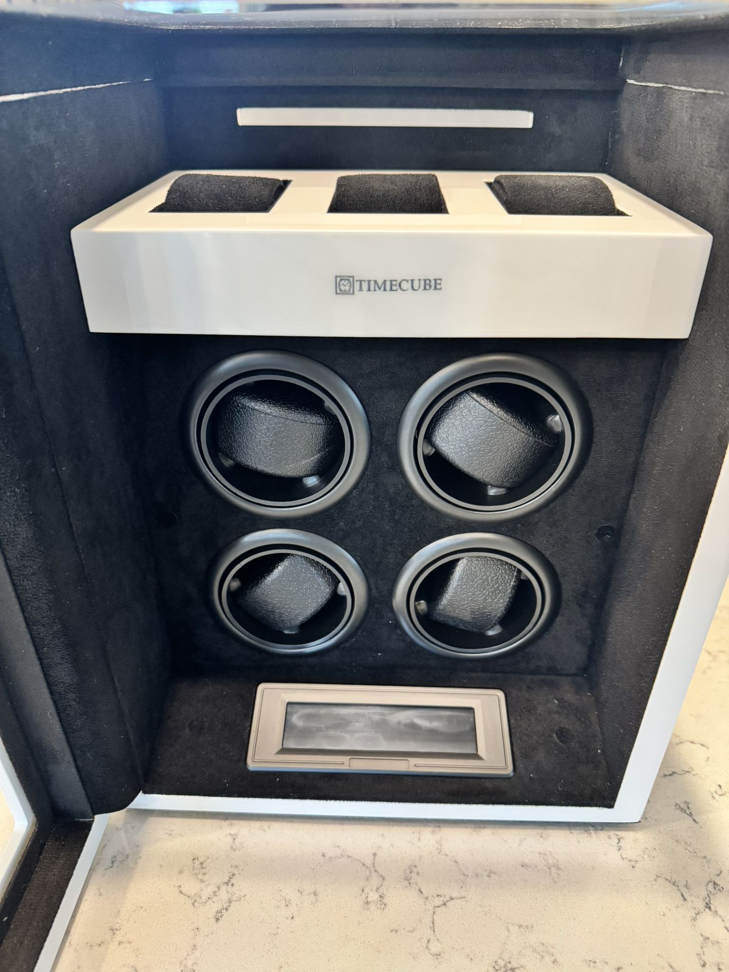 Luxury watch winder in high gloss white. Winds watches and has places for four either display or solar watches. Can set rotations, speed, timers, has built-in light for ambience. Really nice. I switched to an Apple Watch so rarely wear my dress watches so I decided to just manually wind them on the occasion that I do. Was $400 new plus tax. And I have only had it less than a year and only used for 3 months.