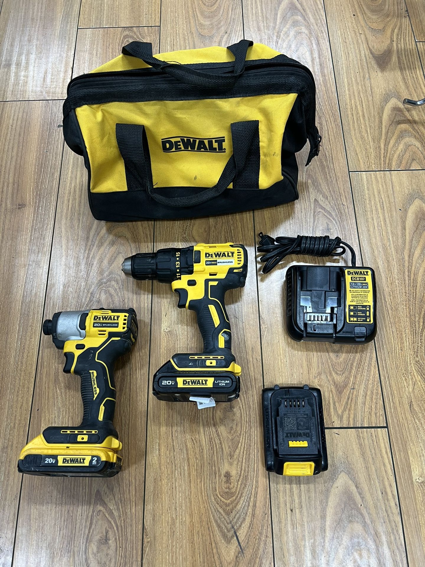 Here we have this pre owned Dewalt drill set with 3 batteries and charger. In great condition has no issues at all works great has no issues at all if you are interested or ah e any questions call or text me. 747/253/1363