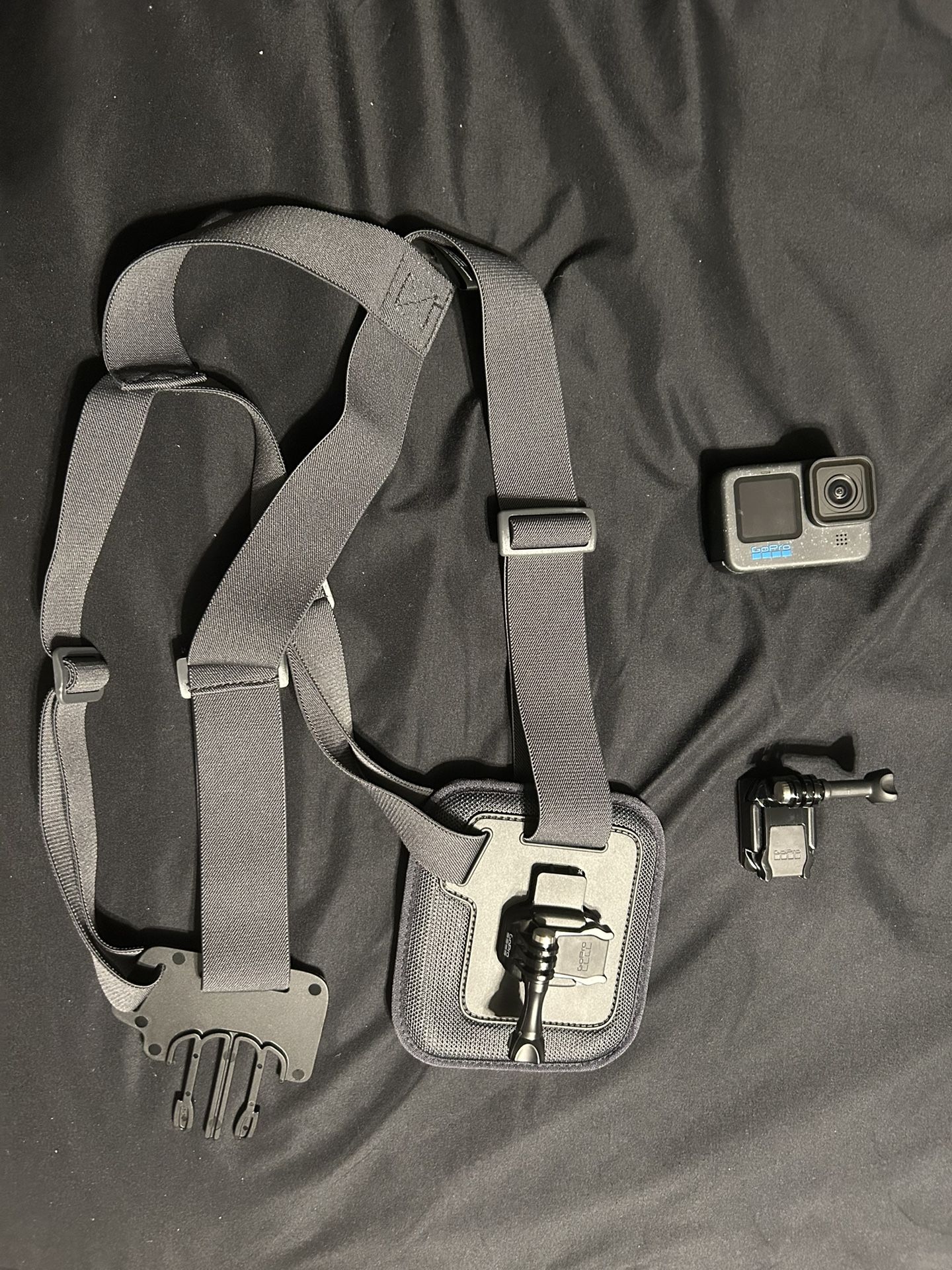 Bought a few months ago and only used it a couple times comes with battery and sim card. comes with chest strap to record and a stand to hold the go pro on a surface, mint condition.