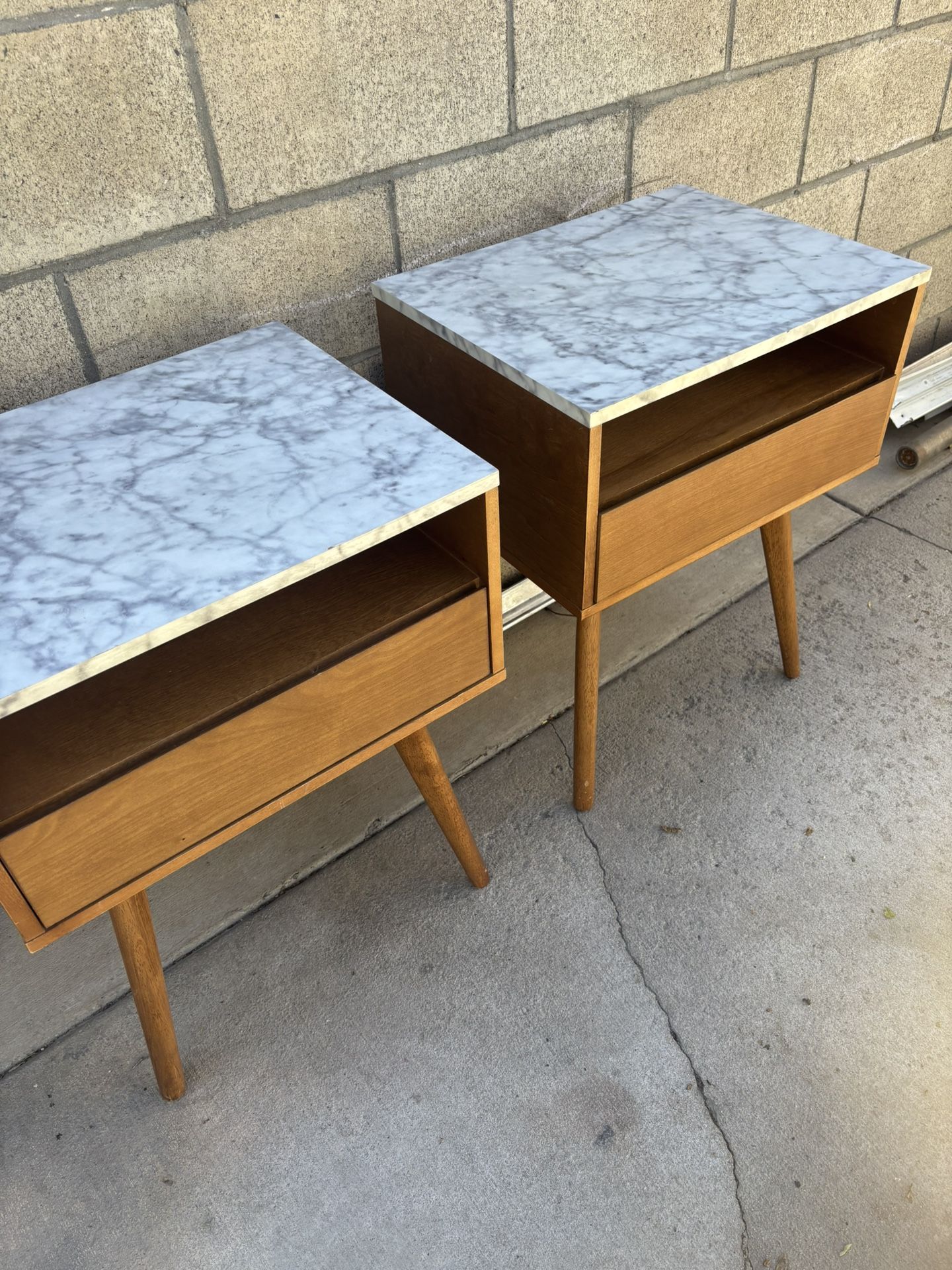 Mid-Century Faux Marble Nightstand with Drawer