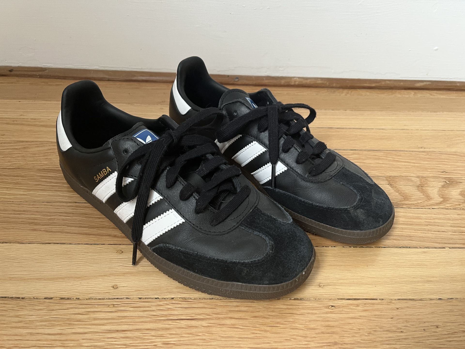 Black Adidas Sambas size 7.5. Great condition, only worn a couple of times!