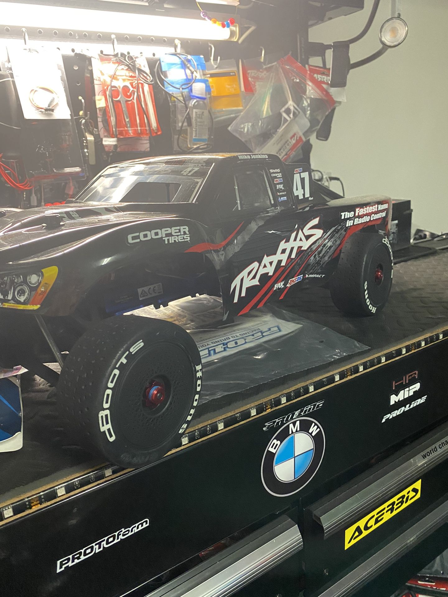 Is nitro 2 speed, custom aluminum new body ran 3 times. No scratches…