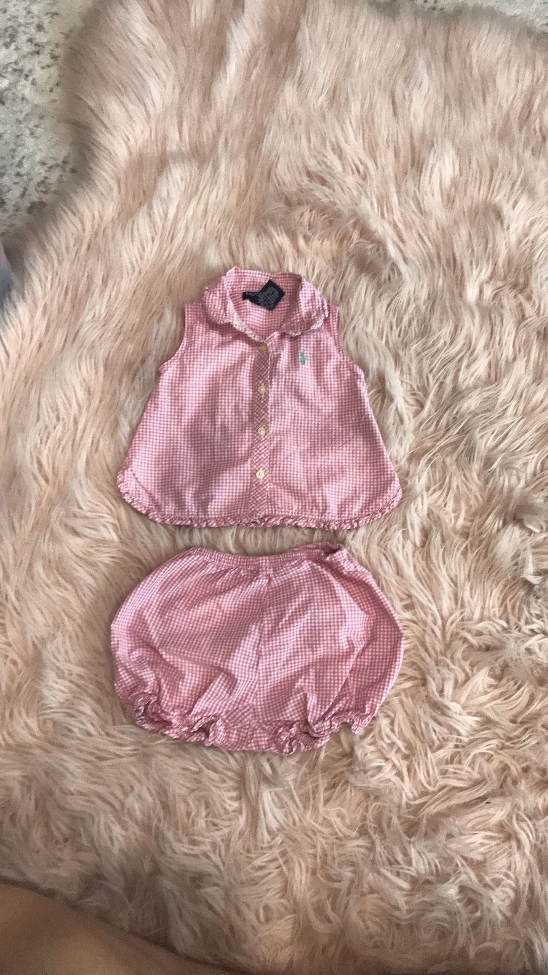 Girls pink and white Ralph Lauren 2 piece 12 month