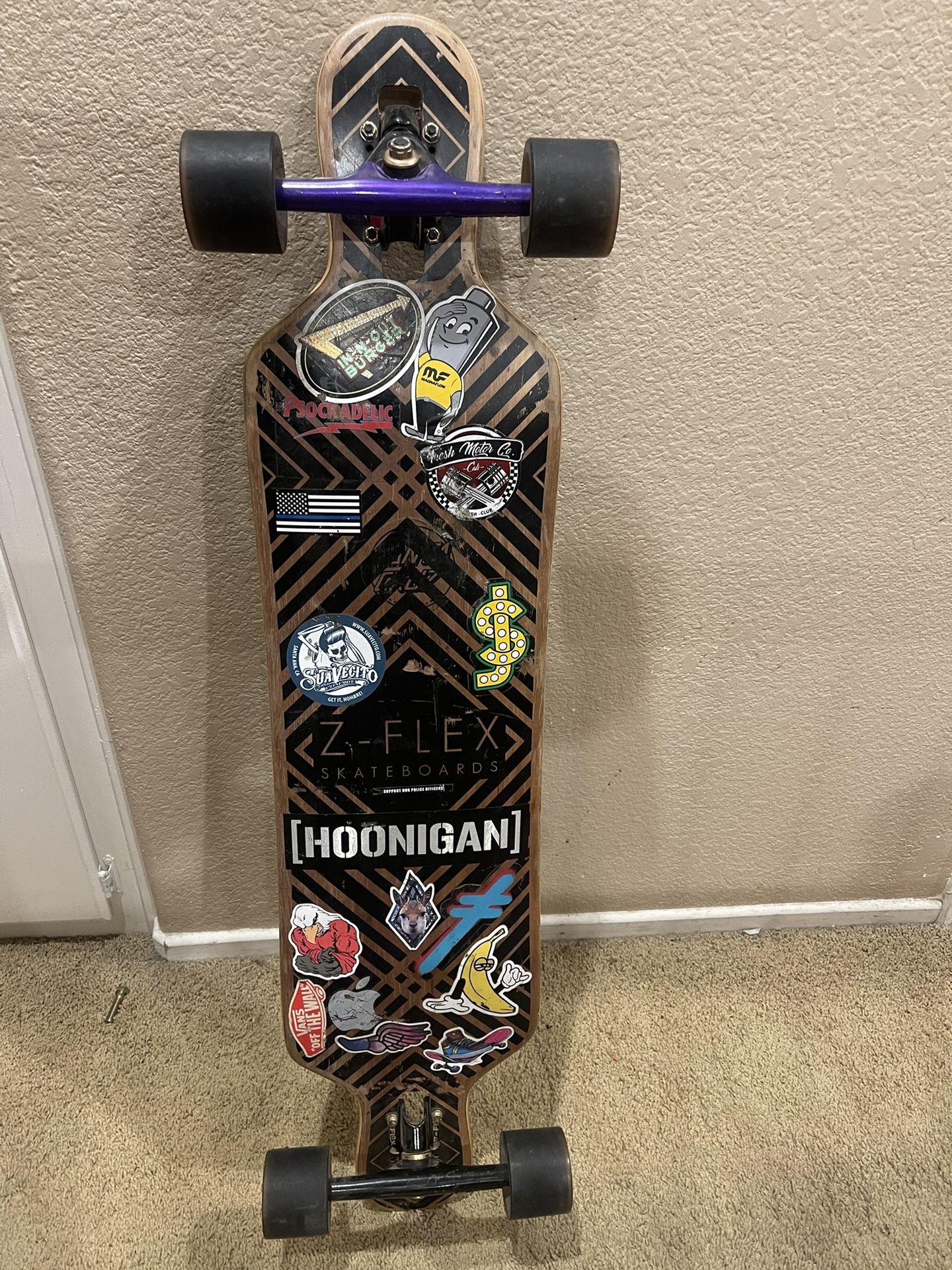 Drop through longboard in amazing condition just dusty very minor scuffs and new bearings.