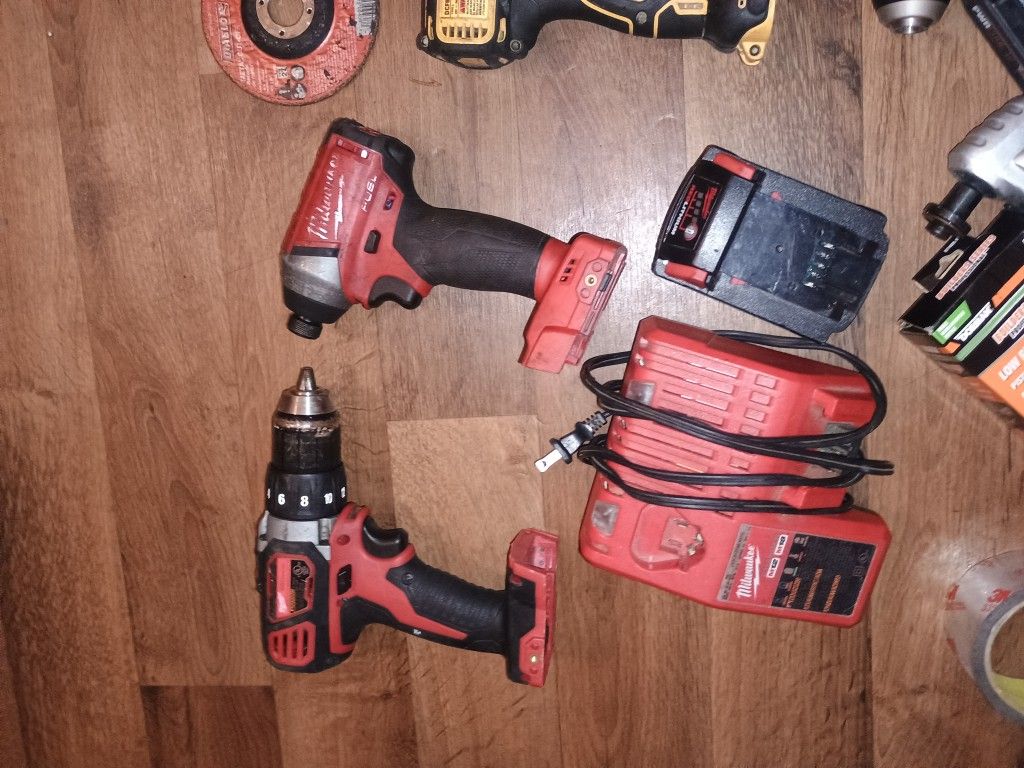 Got a Milwaukee impact drill & a regular drill comes with battery & Milwaukee charger in perfect condition asking for $120 The DeWalt Drill & charger with battery asking for $60 The impact wrench $50 heat gun $30 cutter blades $50 for all blades. $300 for everything.