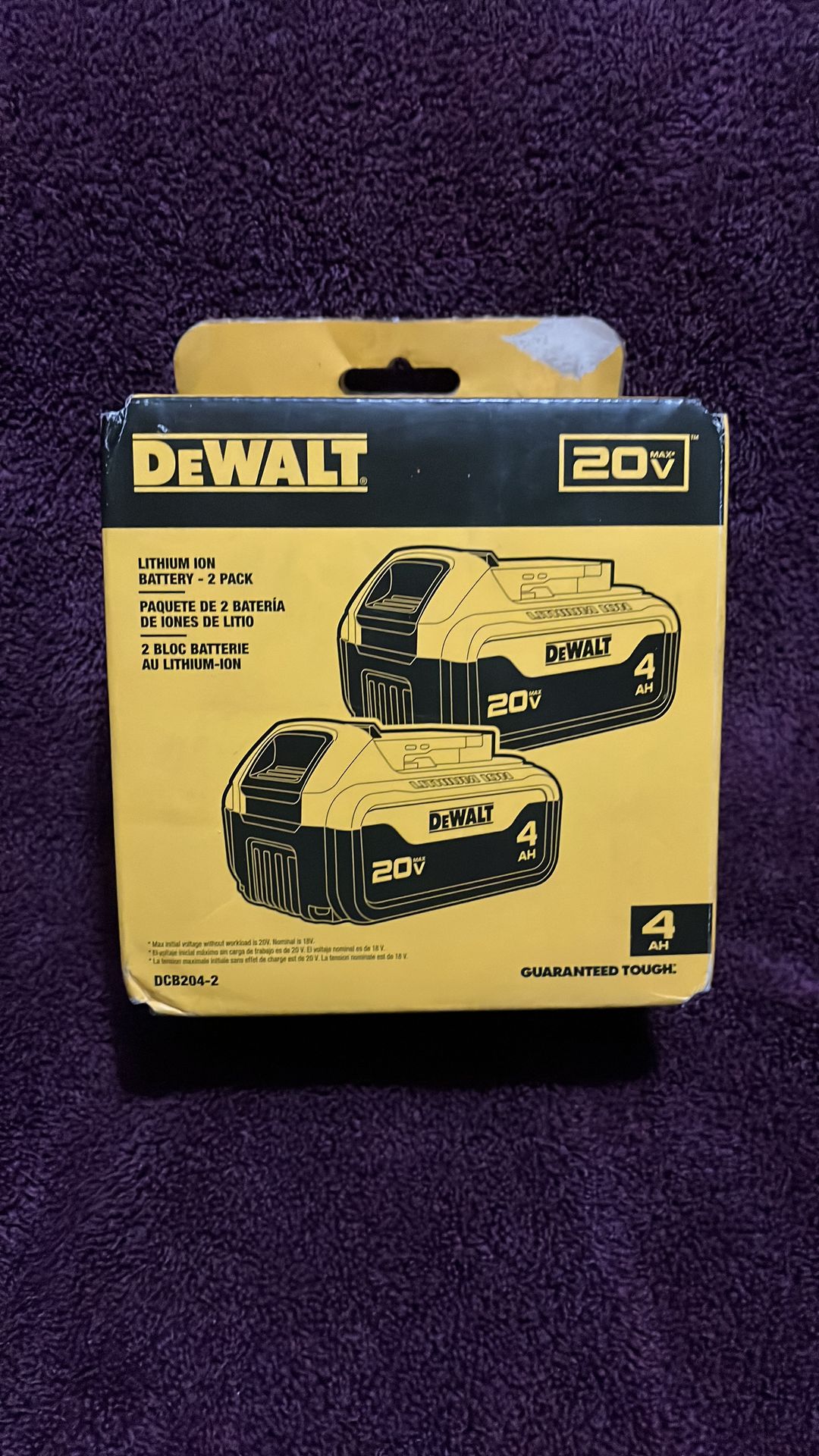 New DeWalt 2 Pack Batteries 20 V 4 AH