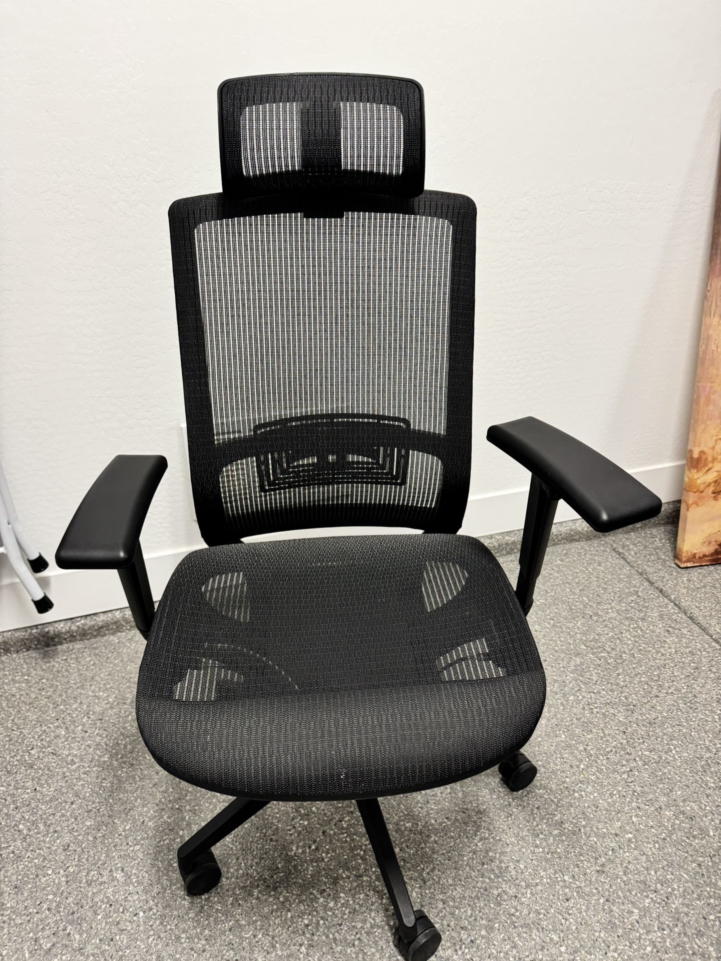 Mesh chair with adjustable up/down. Lumbar adjustment. Super comfortable. Like new condition.
