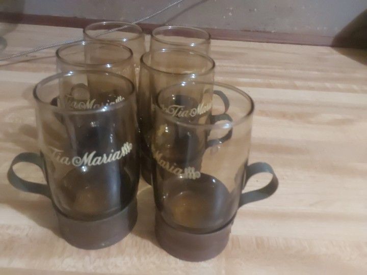 Set Lot of 6 Vintage Tia Maria Liqueur Hot Toddy Glasses with Copper Handles