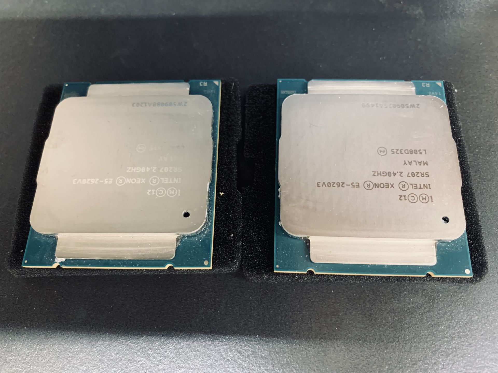 Up for sale are a matched set of intel xeon 2.40ghz new w/o box or docs. Tested fully functional. Step up your game, go dual. Product Collection Intel® Xeon® Processor E5 v3 Family Code Name Products formerly Haswell Vertical Segment Server Processor Number E5-2620V3 Lithography 22 nm Recommended Customer Price $417.00 CPU Specifications Total Cores 6 Total Threads 12 Max Turbo Frequency 3.20 GHz Intel® Turbo Boost Technology 2.0 Frequency‡ 3.20 GHz Processor Base Frequency 2.40 GHz Cache 15 MB Intel® Smart Cache Bus Speed 8 GT/s # of QPI Links 2 TDP 85 W Supplemental Information Marketing Status Discontinued Launch Date Q3'14 Servicing Status End of Servicing Updates End of Servicing Updates Date Friday, December 31, 2021 Embedded Options Available Yes Use Conditions Server/Enterprise Memory Specifications Max Memory Size (dependent on memory type) 768 GB Memory Types DDR4 1600/1866 Max # of Memory Channels 4 Max Memory Bandwidth 59 GB/s Physical Address Extensions 46-bit ECC Memory Supported ‡ Yes Expansion Options Scalability 2S PCI Express Revision 3.0 PCI Express Configurations ‡ x4, x8, x16 Max # of PCI Express Lanes 40 Package Specifications Sockets Supported FCLGA2011 Max CPU Configuration 2 TCASE 72.6°C Package Size 52.5mm x 45mm Advanced Technologies Intel® Turbo Boost Technology ‡ 2.0 Intel® Hyper-Threading Technology ‡ Yes Intel® Transactional Synchronization Extensions No Intel® 64 ‡ Yes Instruction Set 64-bit Instruction Set Extensions Intel® AVX2 Idle States Yes Enhanced Intel SpeedStep® Technology Yes Intel® Demand Based Switching Yes Thermal Monitoring Technologies Yes Intel® Flex Memory Access No Intel® Identity Protection Technology ‡ No Security & Reliability Intel vPro® Eligibility ‡ Intel vPro® Platform Intel® Secure Key Yes Intel® AES New Instructions Yes Intel® OS Guard Yes Intel® Trusted Execution Technology ‡ Yes Execute Disable Bit ‡ Yes Intel® Virtualization Technology (VT-x) ‡ Yes Intel® Virtualization Technology for Directed I/O (VT-d) ‡ Yes Intel® VT-x with Extended Page Tables (EPT) ‡ Yes