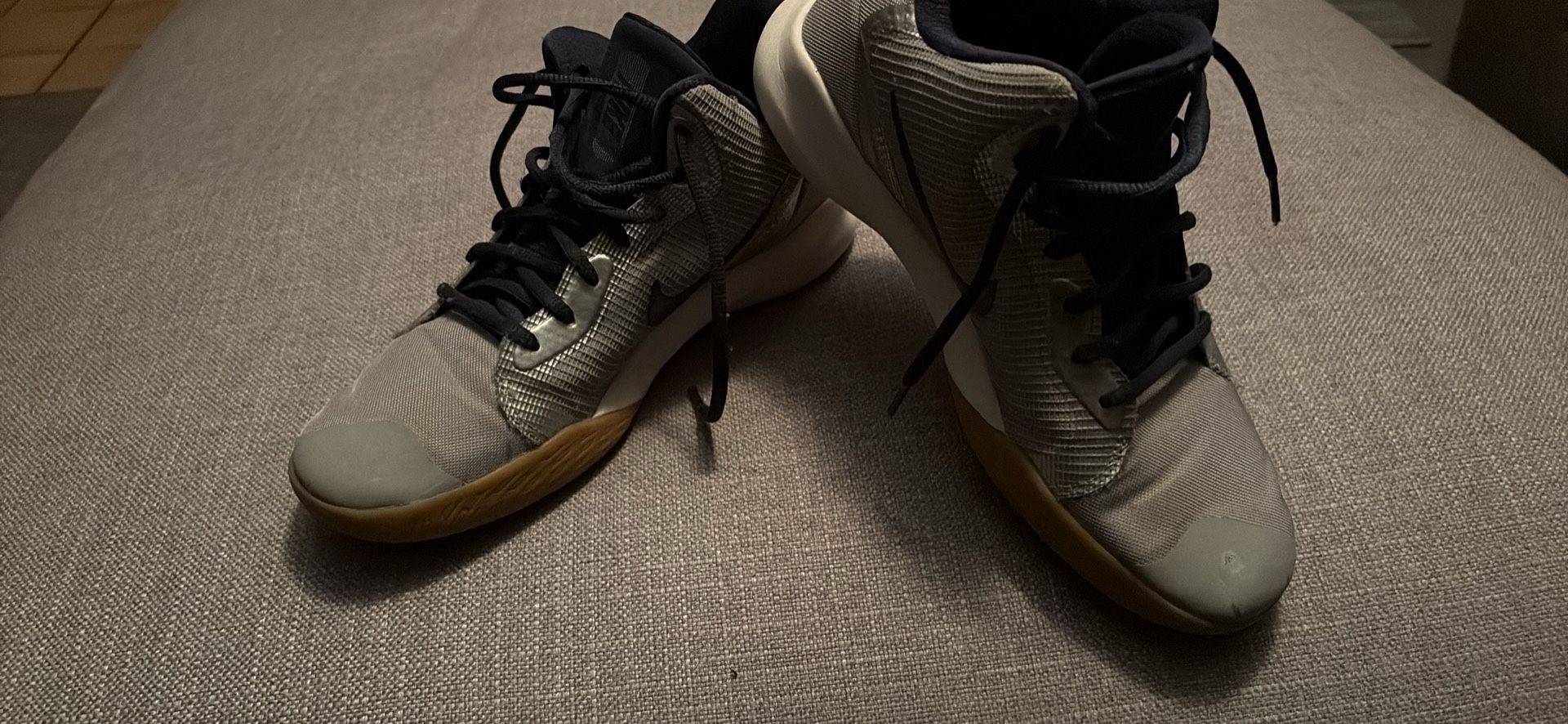 Nike Precision 3 basketball shoes in the Light Smoke Grey Navy colorway