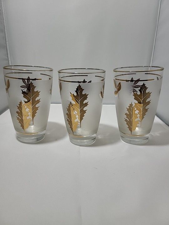Libbey Starlyte Frosted Gold Leaf Tea/Water Glasses Set Of 3 (MM)