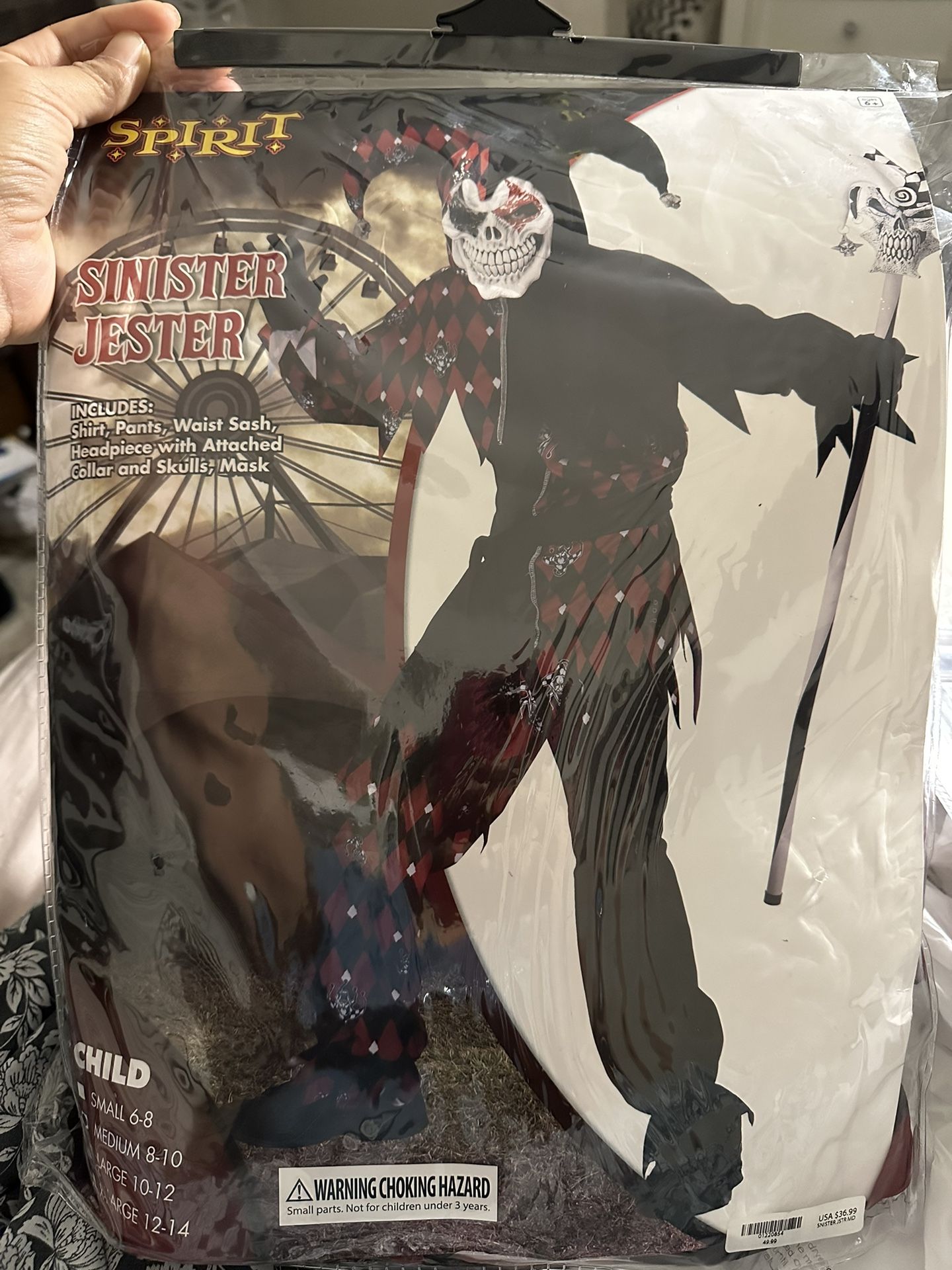 Selling it because it didn’t fit my son and spirit Halloween isn’t doing exchanges or returns spent almost 75$ letting it go 50$ so I can get my son another costume this is size medium 8-10