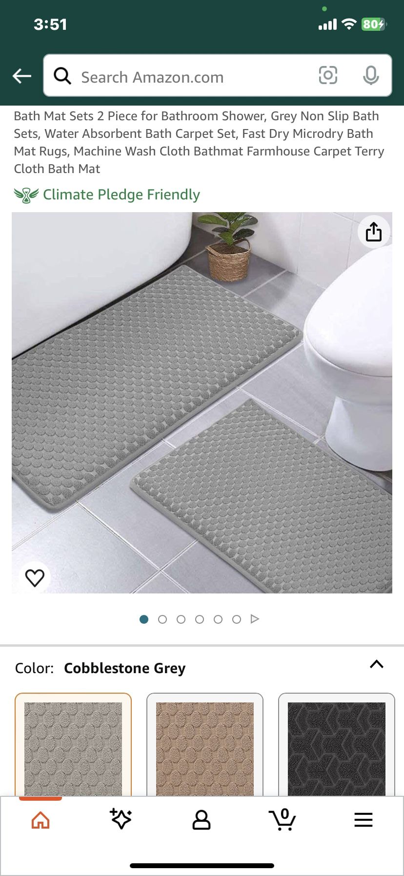 Bath Mat Sets 2 Piece for Bathroom Shower, Grey Non Slip Bath Sets, Water Absorbent Bath Carpet Set, Fast Dry Microdry Bath Mat Rugs, Machine Wash Clo