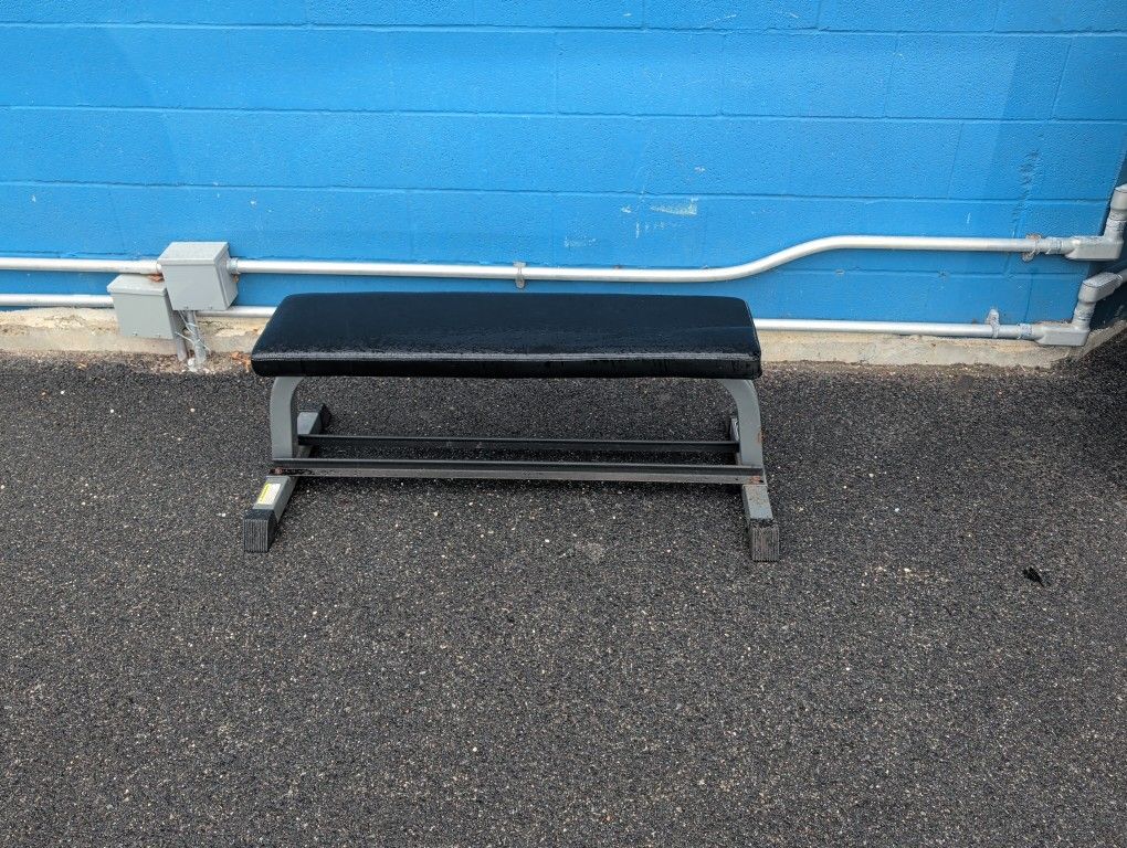 Sturdy, solid and well padded flat workout bench.