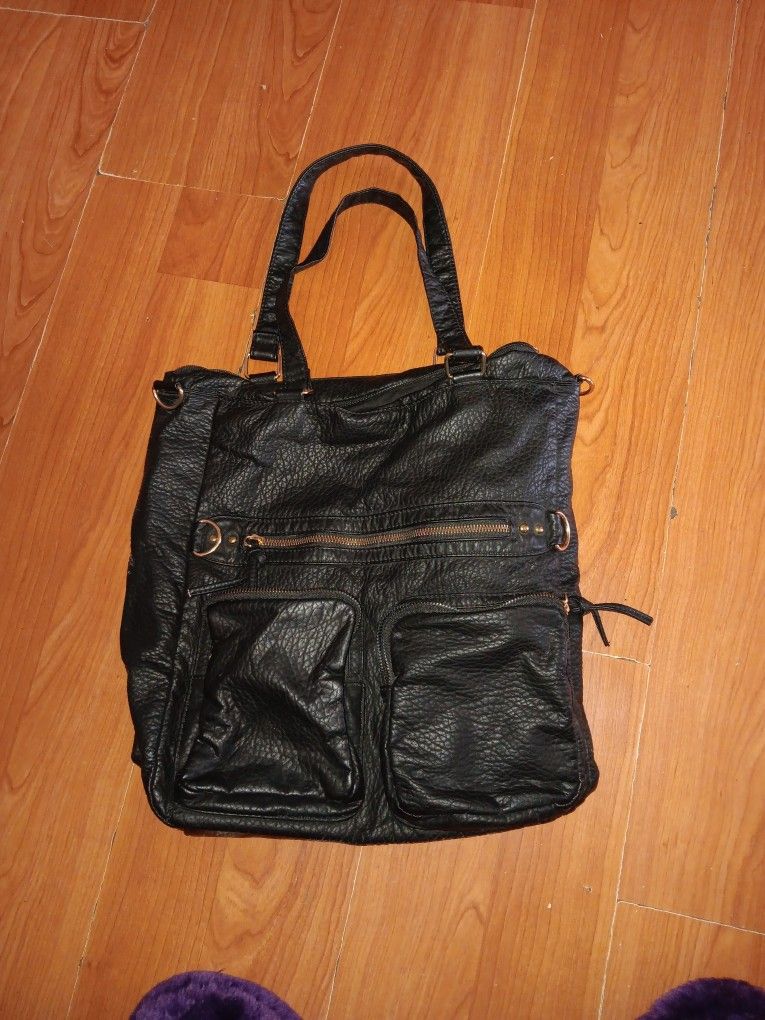 Off brand hand bag. Slightly used no rips or tears, but is missing a zipper hassle on one of the front pockets, also comes with a longer stap.