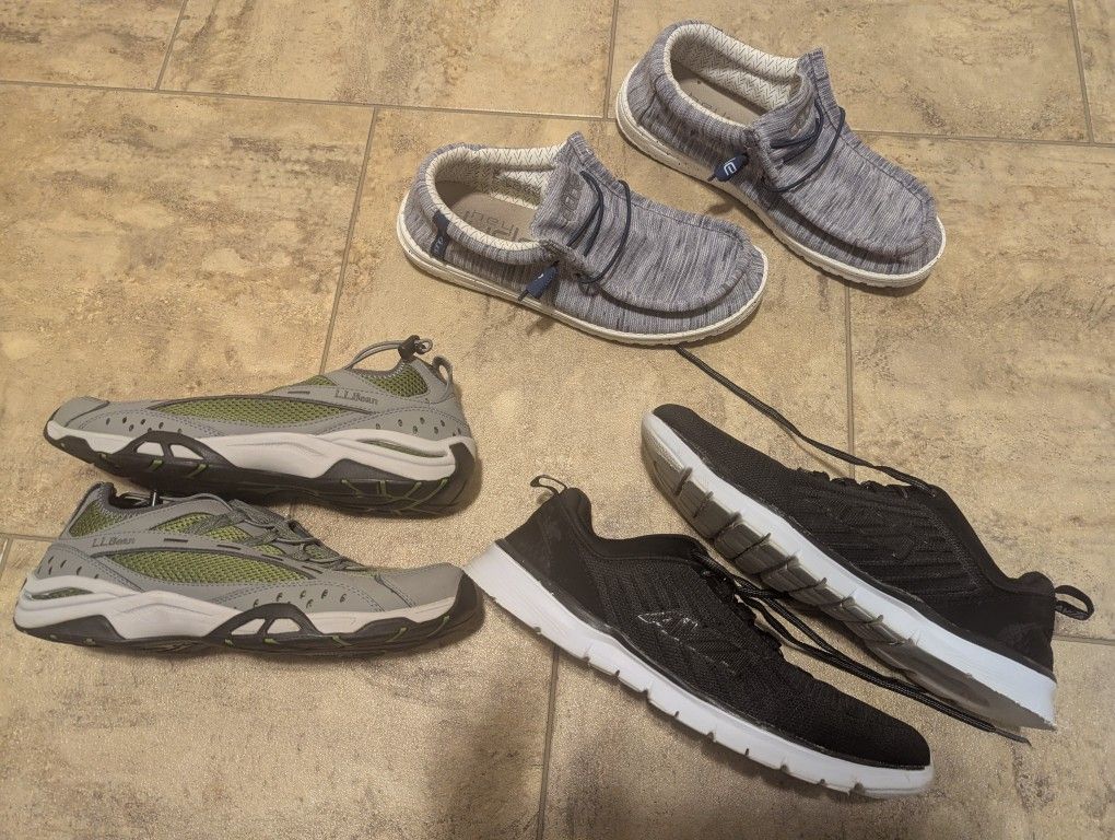 All in very good condition. One pair of LL Bean. One pair of Avia. One pair of hey dudes. Men's size 10. 13.00 apiece or all three for 35.00.