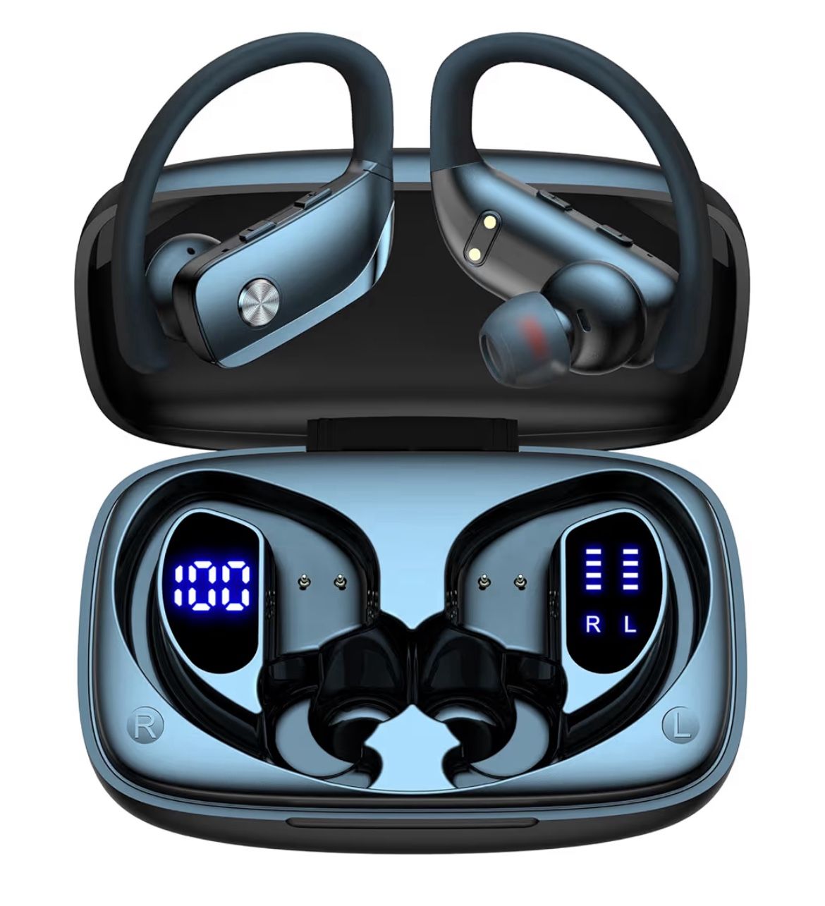 bmani Ear Buds Wireless Earbuds Bluetooth Headphones with 80H Playtime LED Display Case, Over-Ear Hook with Mic, Stereo Sound, Easy Button Controls, S
