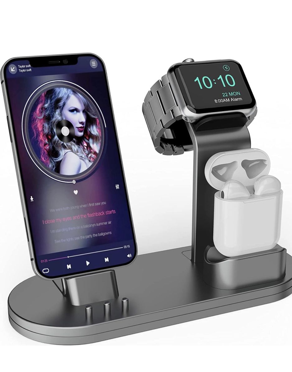 3 in 1 Charging Stand iwatch Stand, Charging Station Compatible with iWatch SE/6/5 /4/3 /2/1, AirPods Pro and iPhone Series 12/11/ X /8/7 /6S /5 Space Gray Retails 26.99 plus tax